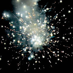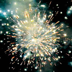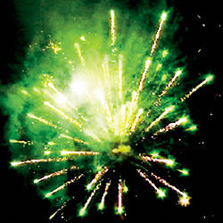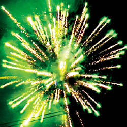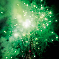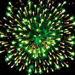 13. Зеленые звезды с пышными хвостами (кокос) и трещащие разрывы (трещащий дождь).
