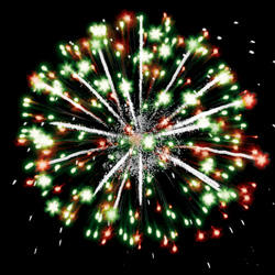 6. Серебряных форсов с красными и зелёными огнями на концах; 7-8. Крупных красных огней и трещащих серебряных искристых форсов, множеством трещащих сфер;