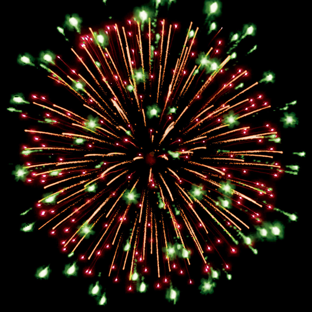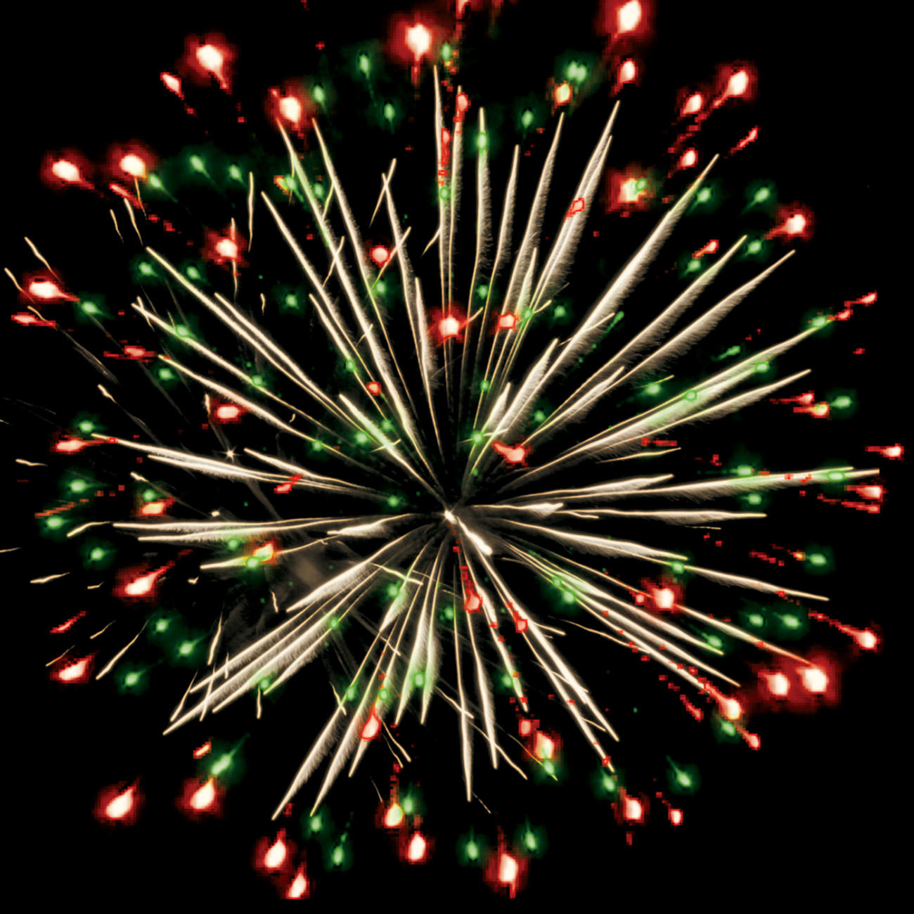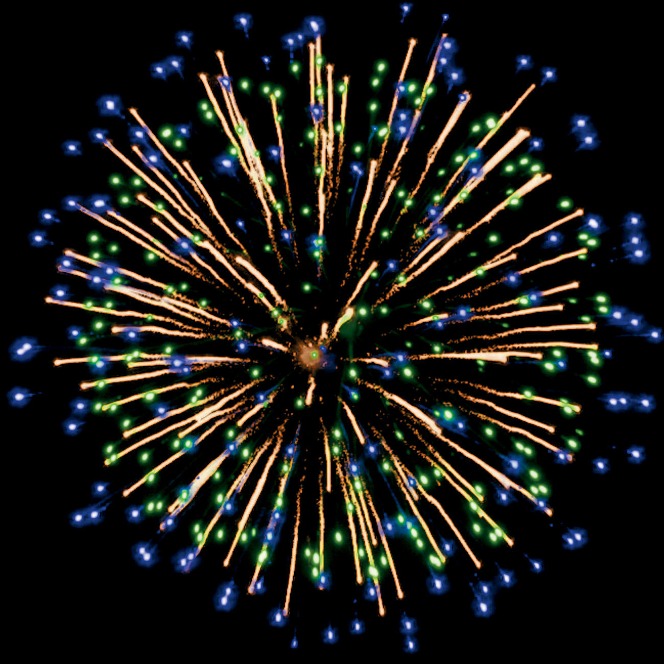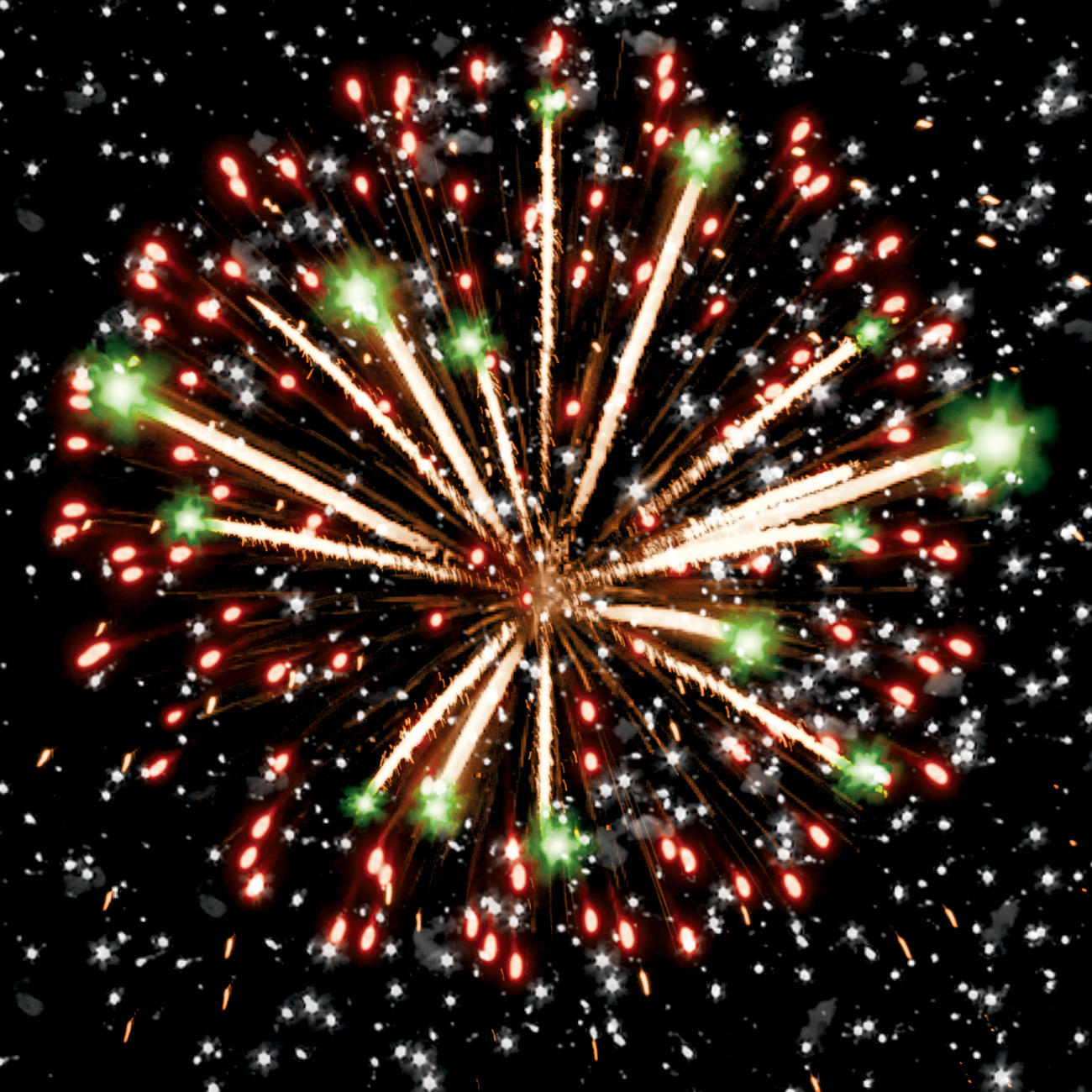 • Разноцветные кометы и зигзагообразные трассы с золотыми, серебряными и трещащими искрами