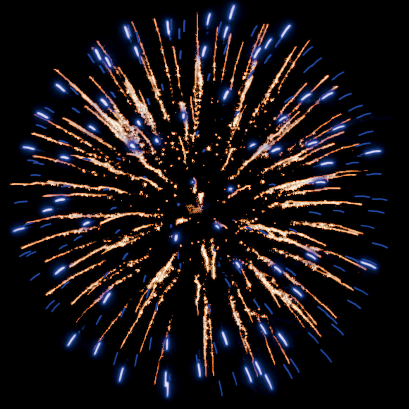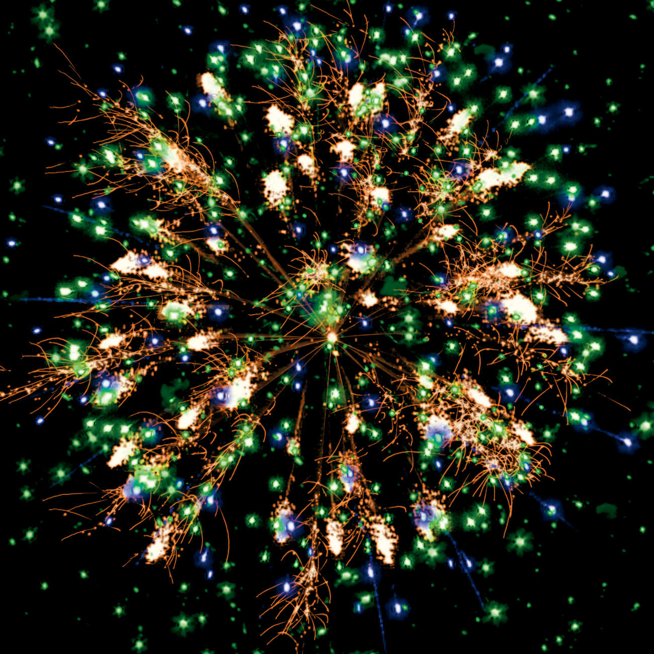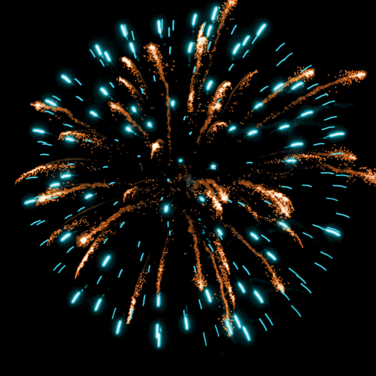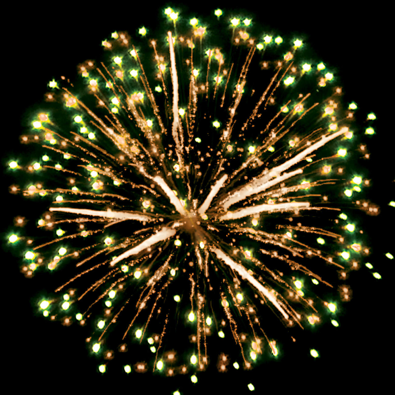 • Разноцветные кометы и зигзагообразные трассы с золотыми, серебряными и трещащими искрами