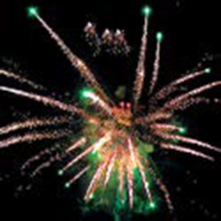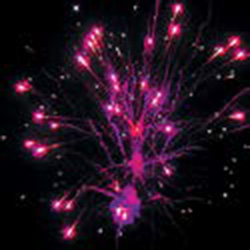 Разноцветные кометы, серебряные трещащие трассы разрываются сферами из: красных и серебряных мерцающих огней; фиолетовых и серебряных мерцающих огней; золотых форсов с красными мерцающими шуршащими искрами; золотых форсов с серебряными мерцающими шуршащими искрами; красных огней с серебряными форсами; зеленых огней с серебряными форсами; золотых форсов с красными мерцающими искрами; золотых форсов с серебряными мерцающими искрами; золотых форсов с золотыми мерцающими искрами; золотых форсов с серебряными разлетающимися трещащими искрами; красных огней с золотыми форсами; зеленых огней с золотыми форсами; синих огней с золотыми форсами; золотых форсов с трещащими серебряными искрами; множества трещащих искр (залп).
