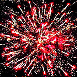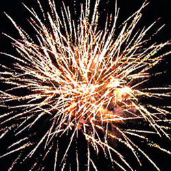 10. Красочная концовка: множество серебряных ниспадающих нитей (парча) и облако трещащих разрывов (трещащий дождь).