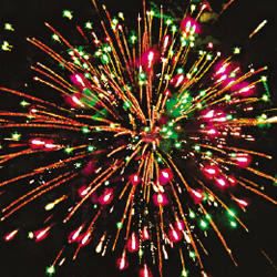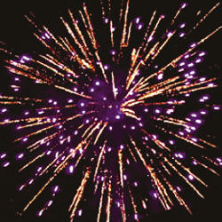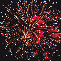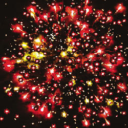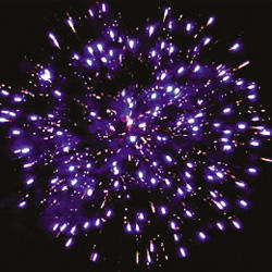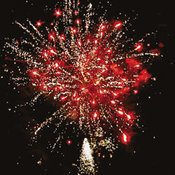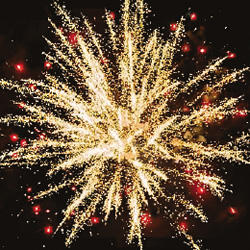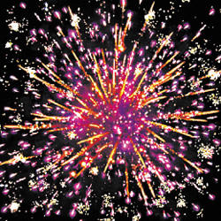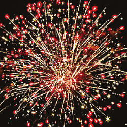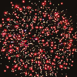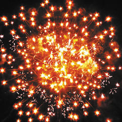 8. Серебряная вертушка разрывается красными звездами и облаком треска (трещащая хризантема)
