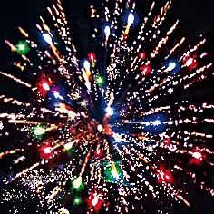 Золотые кометы, переходящие в мерцающие зеленые звезды и белое мерцание. Красные, зеленые, синие звезды и золотые трещащие звезды. Зеленые мерцающие звезды и золотые кометы с трещащими хвостами. Красные звезды с белыми хвостами и белые мерцающие звезды с треском. Белые трещащие звезды с хвостами. Золотые кометы и синие звезды. Красные мерцающие звезды и золотые кометы с трещащими хвостами. Фиолетовые звезды и сфера золотых трещащих разрывов. Сфера из белых комет. Зеленые звезды и сфера из золотых трещащих разрывов.