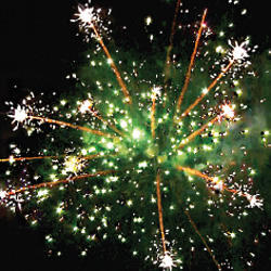 2. Красные звезды с пышными хвостами (кокос) и облако треска (трещащая хризантема)