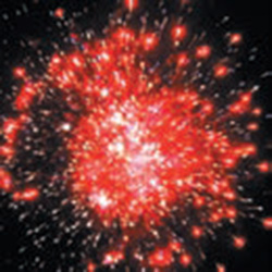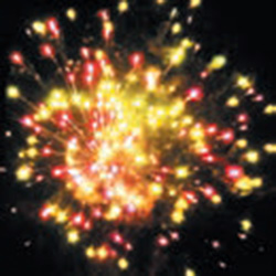 6. Вертушки разрываются красно-белой мерцающейе сферой (пион).