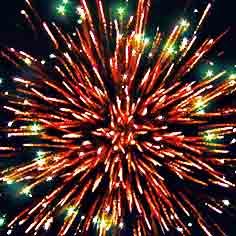 Новейшая разработка - два блока соединяются коннектором (КОННЕКТОР НАХОДИТСЯ ПОД ФОЛЬГОЙ). Благодаря такой компоновке не возникает трудностей с транспортировкой. Красные, зеленые, фиолетовые звезды с оранжевыми хвостами и мерцанием. Белые искристые букетики. Золотые хвосты или алые, красные, зеленые звезды с зеленым, оранжевым мерцанием и белыми хвостами. Белые кометы и синие звезды, золотые шуршащие букетики. Красные, зеленые, фиолетовые звезды, золотые хвосты и треск с белым мерцанием. Разрыв букетом синих звезд, переходящих в белые падающие звезды, белые мерцающие звезды с оранжевыми хвостами и синие звезды. Искристые вертушки разрываются зелеными и фиолетовыми звездами. Зеленые, синие звезды с белыми хвостами переходящие в красные мерцающие звезды. Белые, оранжевые хвосты и золотые, синие мерцающие звезды. Зеленые звезды разрываются букетом зеленых и синих хаотично разлетающихся звезд. Искристые вертушки разрываются красными звездами и белыми мерцающими звездами. Два уровня: вверху - оранжевые хвосты, переходящие в золотые и зеленые мерцающие звезды; внизу - белые мерцающие звезды. Красные звезды с белыми, оранжевыми хвостами и белые мерцающие звезды. Красные и зеленые звезды с оранжевыми хвостами и белые мерцающие звезды, переходящие в синие звезды. Искристые вертушки разрываются синими звездами и белыми хвостами. Золотые мерцающие звезды и оранжевые хвосты, переходящие в белые трещащие, мерцающие звезды. Залп разрывается фиолетовыми звездами с белыми хвостами и зелеными мерцающими звездами. Залп разрывается синими звездами и оранжевыми хвостами, переходящими в белые мерцающие, трещащие звезды.