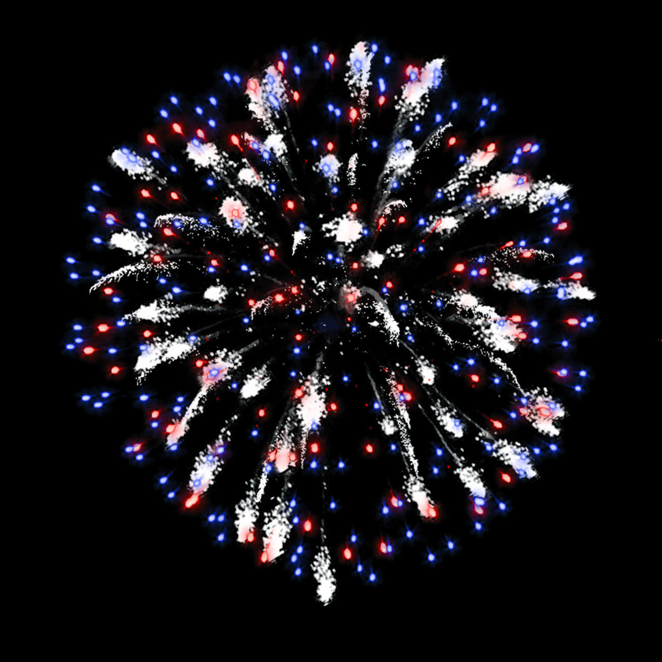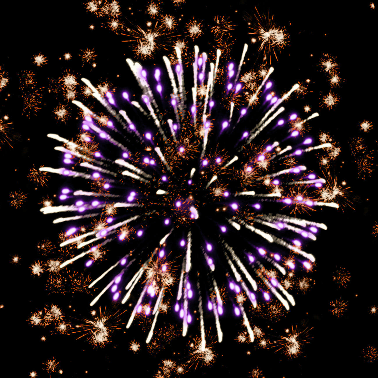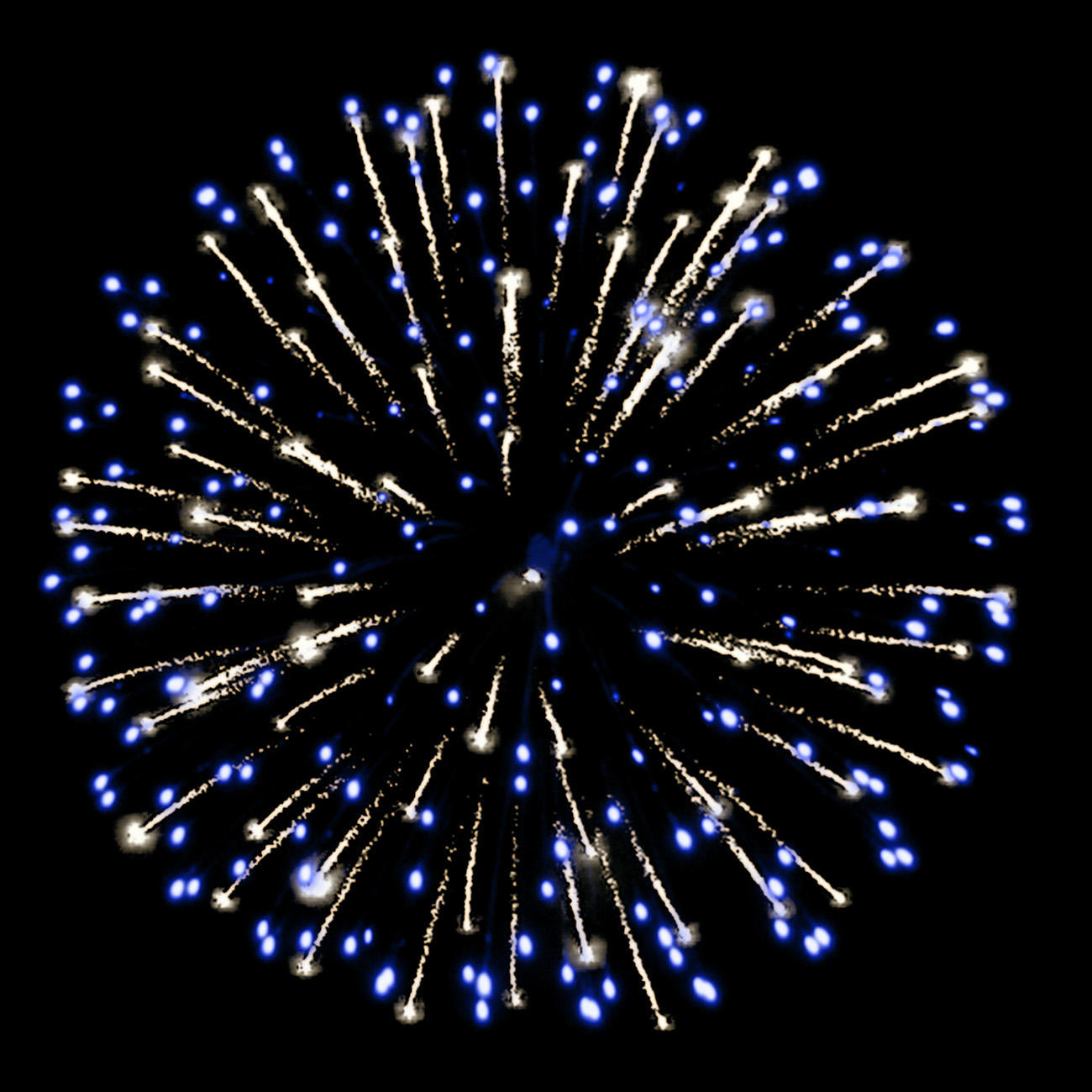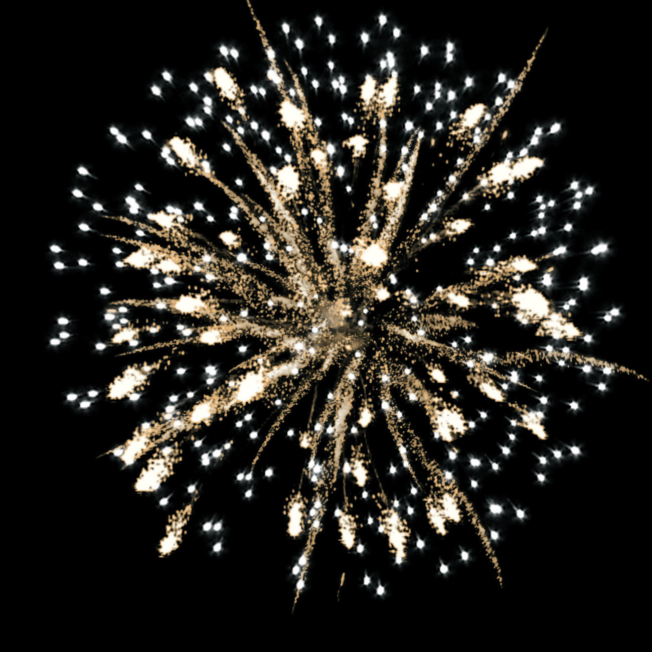 51. Веер. Искристые трещащие трассы, сферы из золотых форсов и серебряных мерцающих огней;