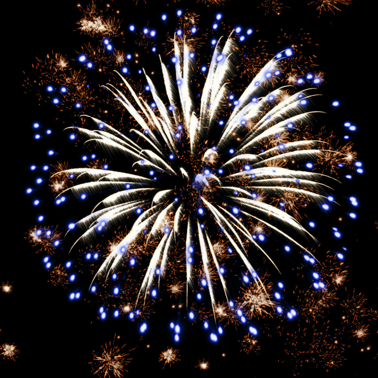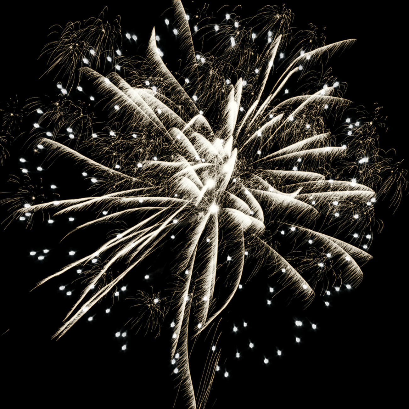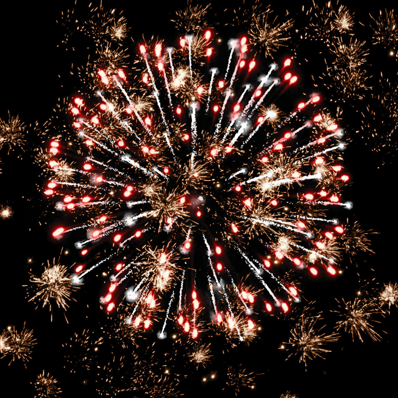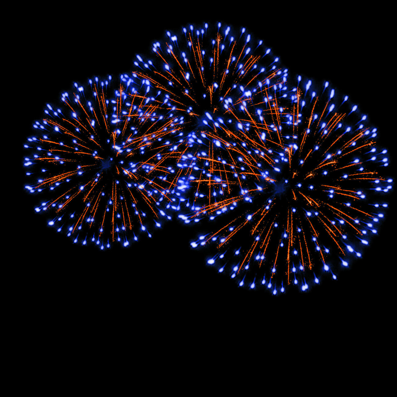 51. Веер. Искристые трещащие трассы, сферы из золотых форсов и серебряных мерцающих огней;