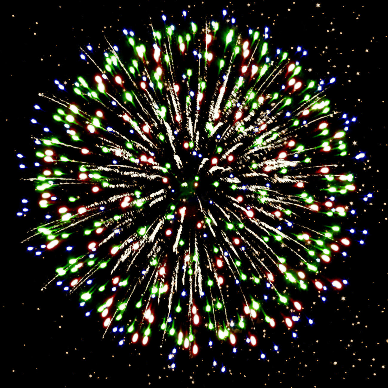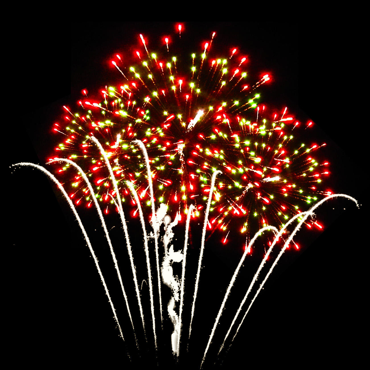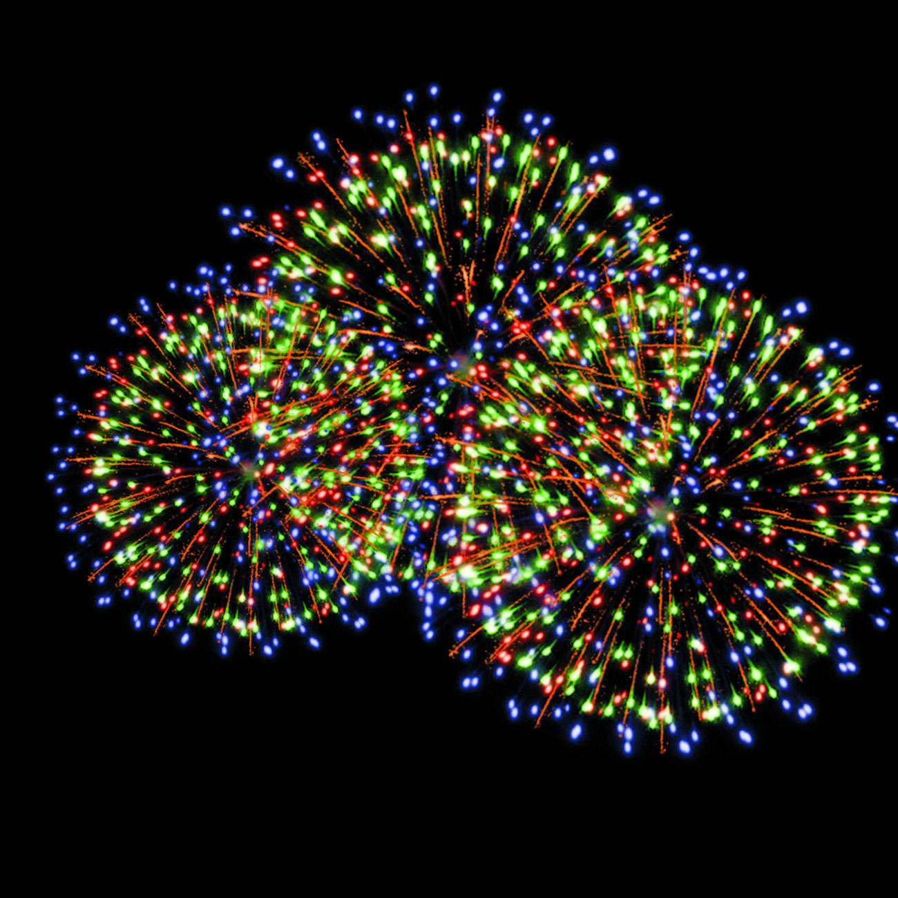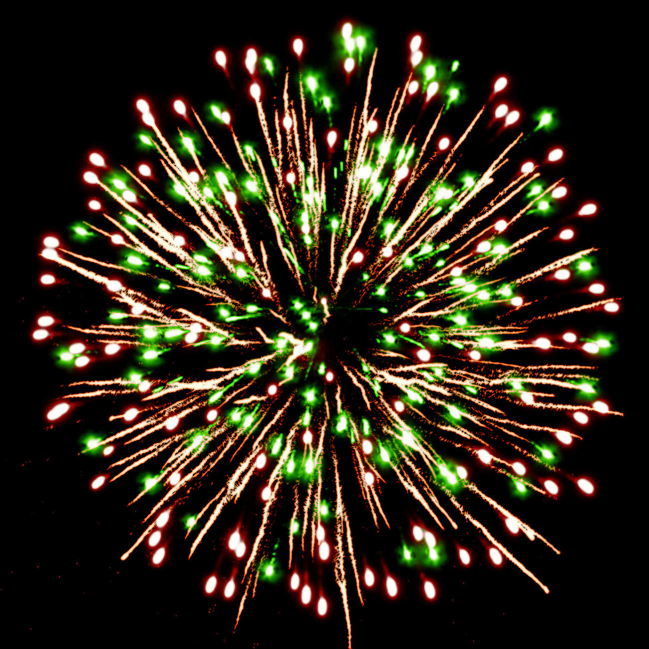 55. Сферы из красных, зеленых и серебряных трещащих огней;