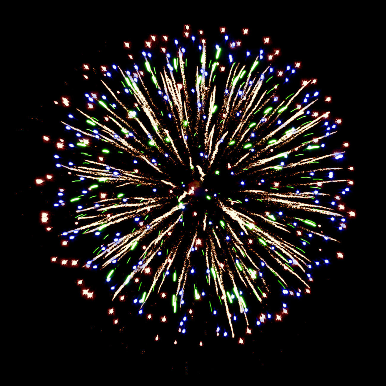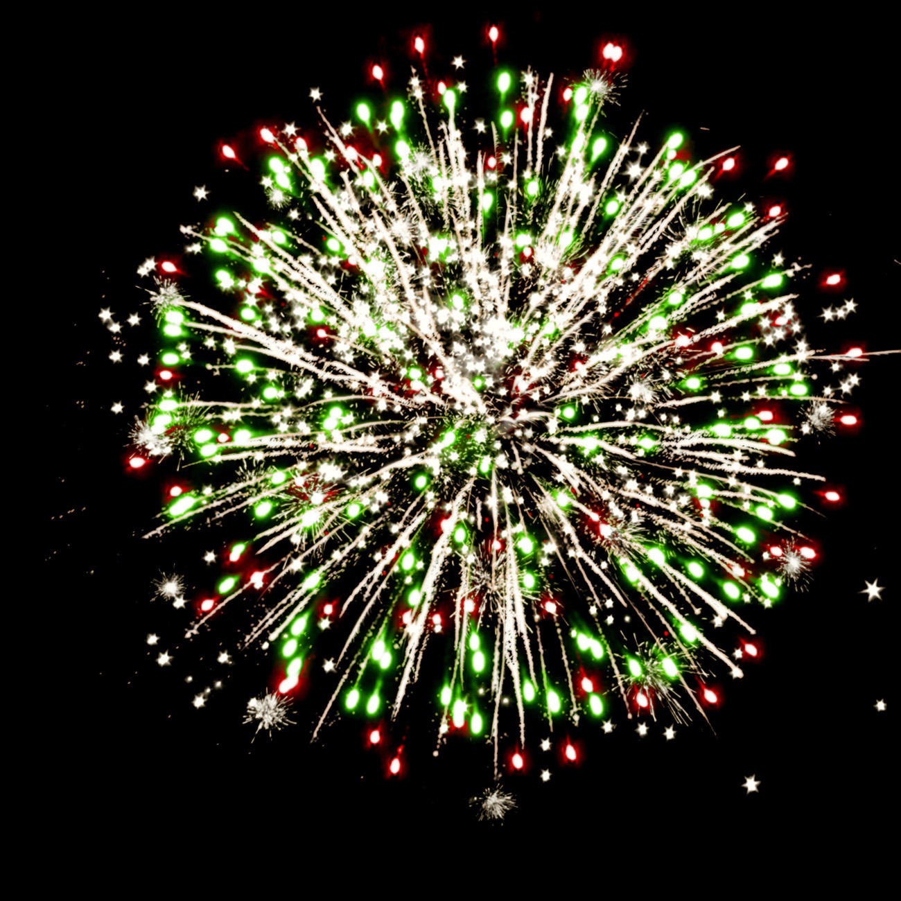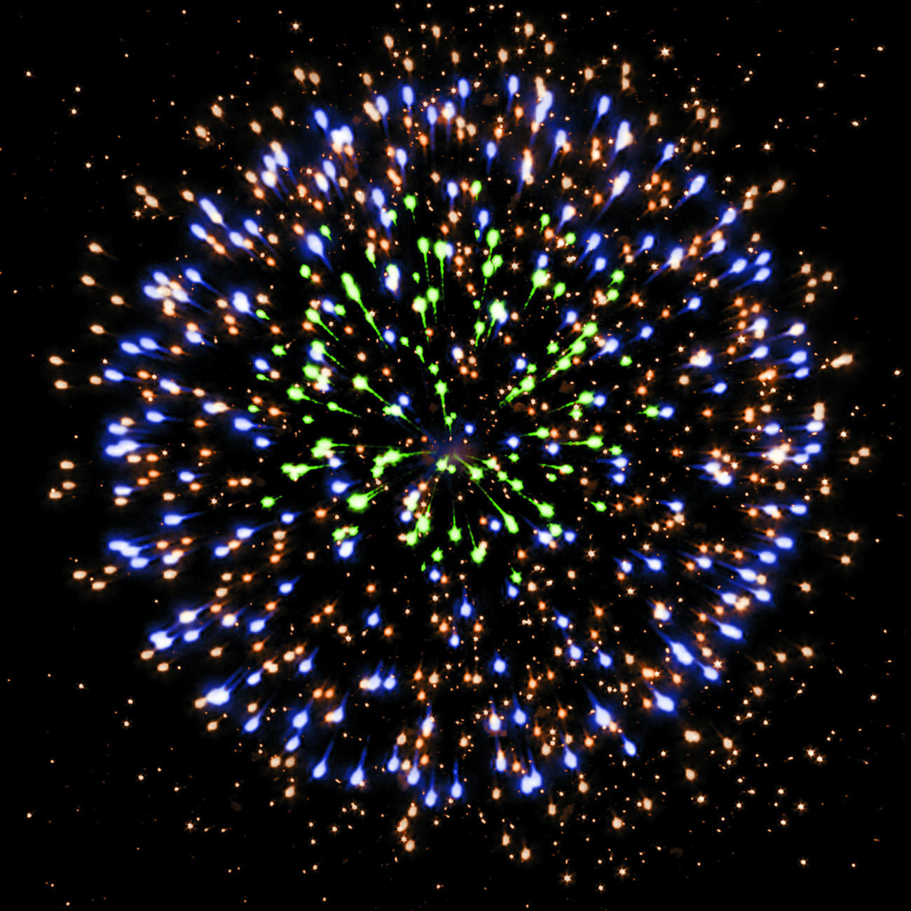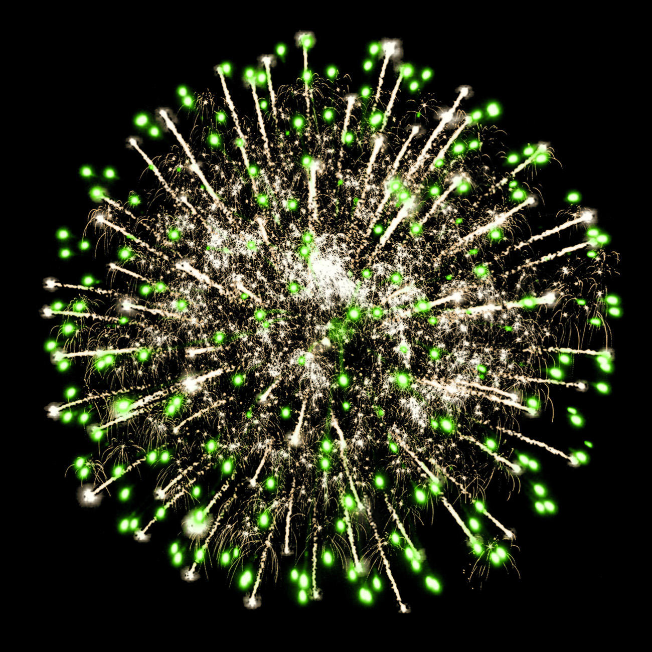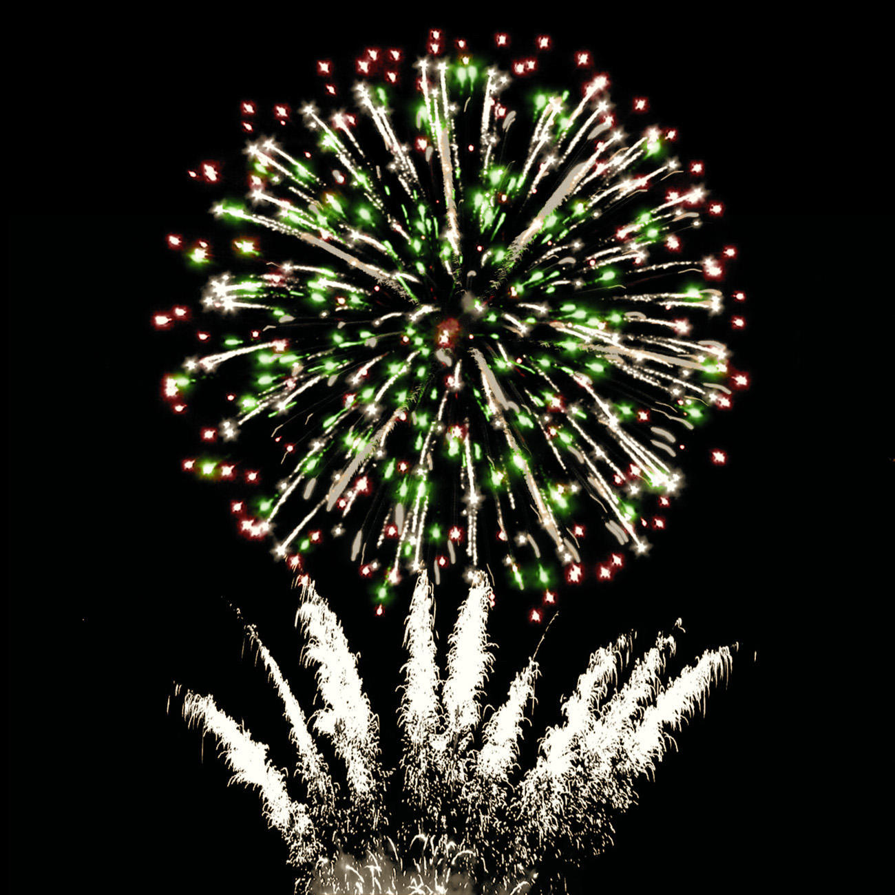 55. Сферы из красных, зеленых и серебряных трещащих огней;