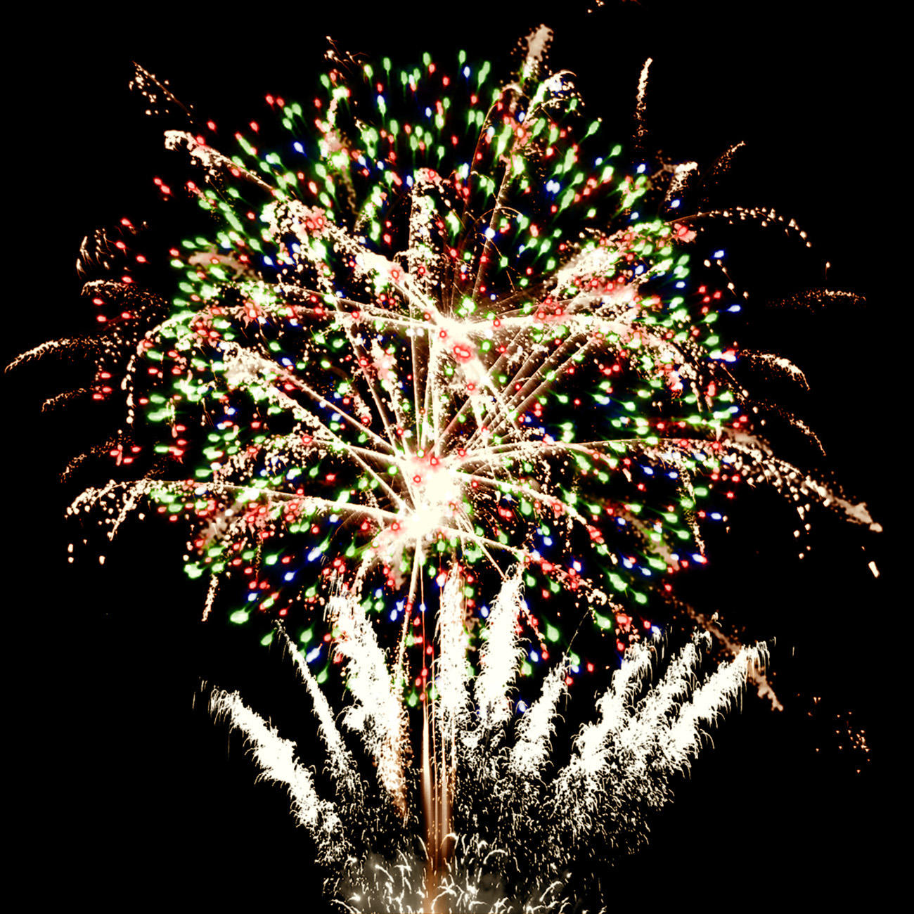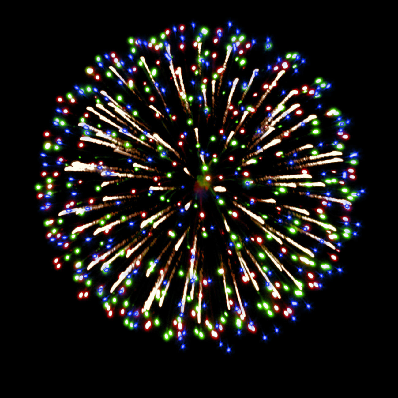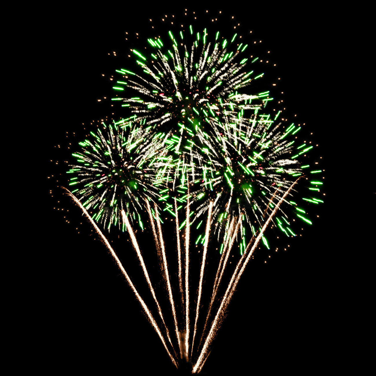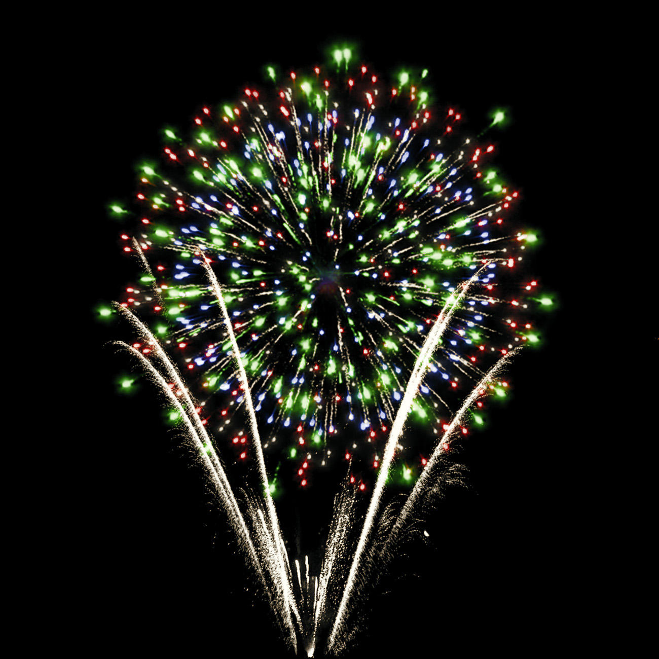 55. Сферы из красных, зеленых и серебряных трещащих огней;