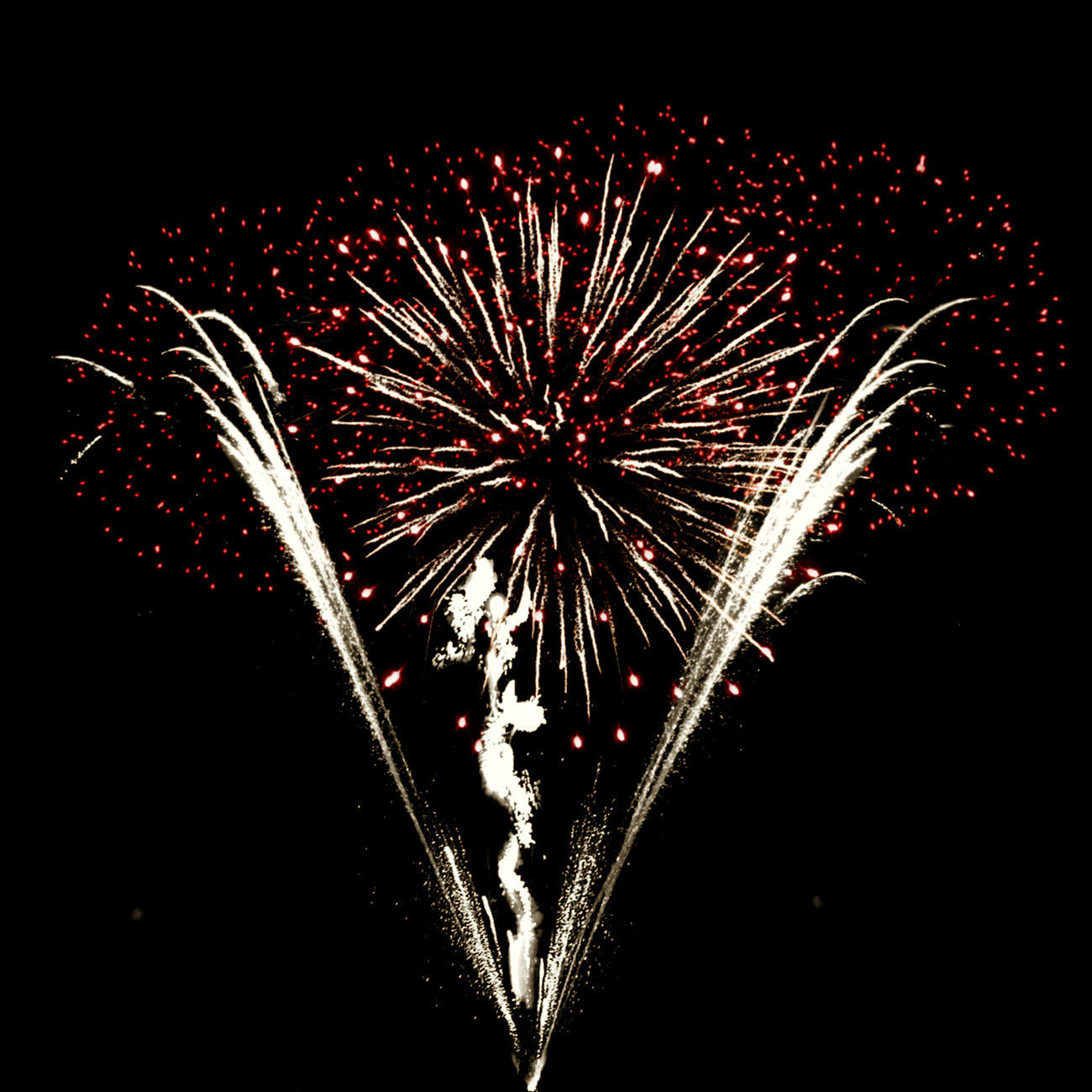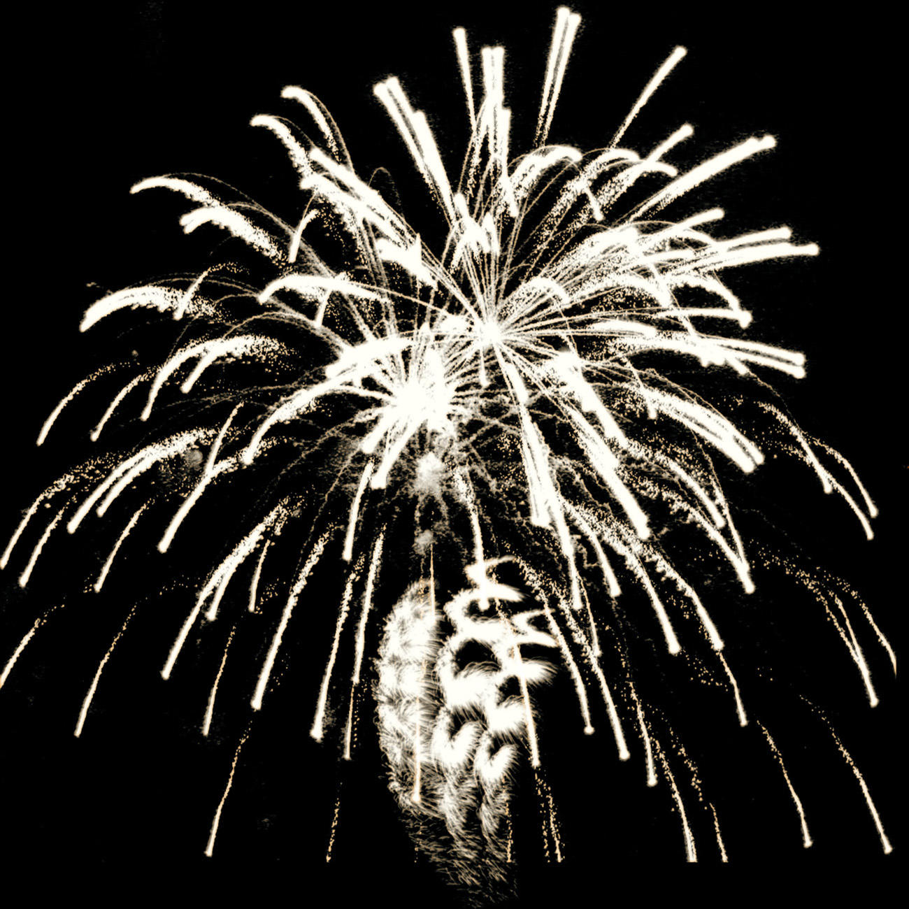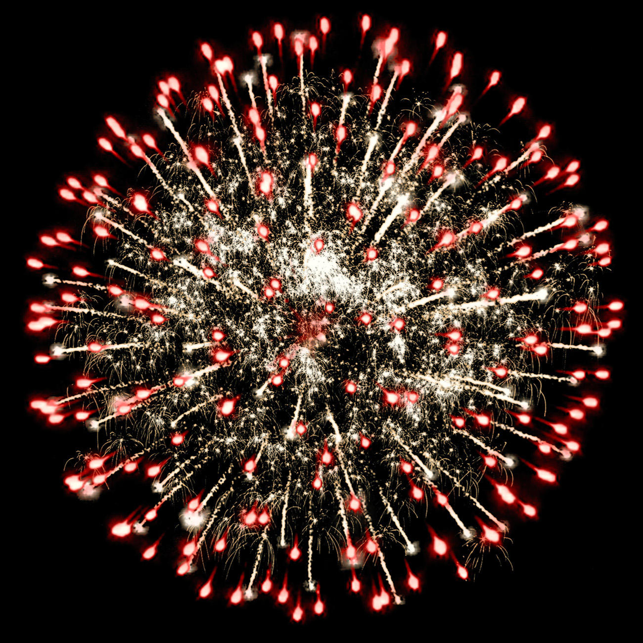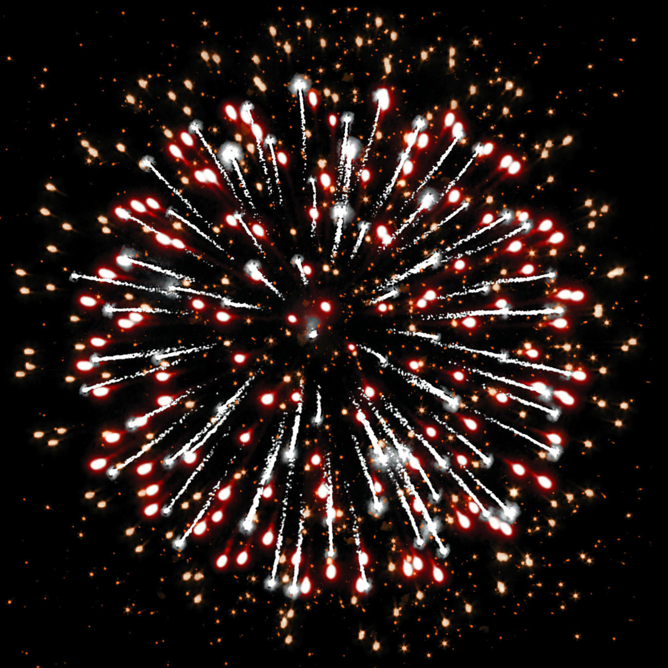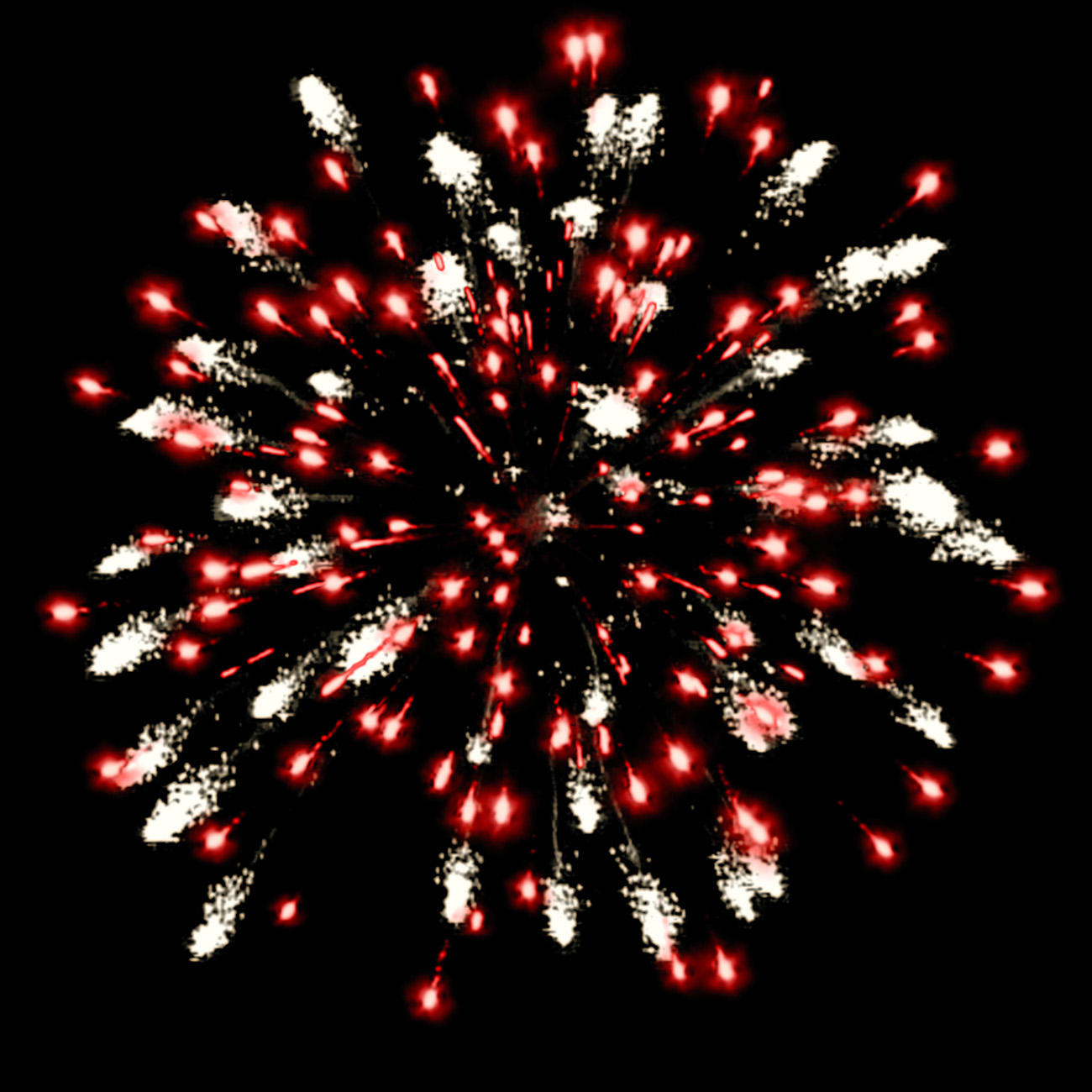 21. Разноцветные кометы, сферы из серебряных форсов с красными огнями на концах и множеством трещащих разлетающихся серебряных огней;