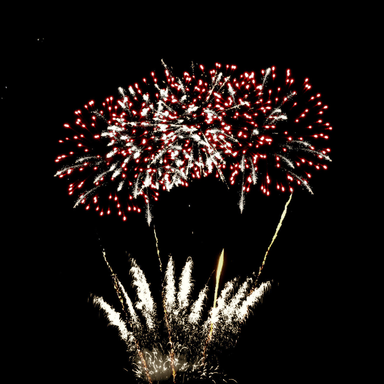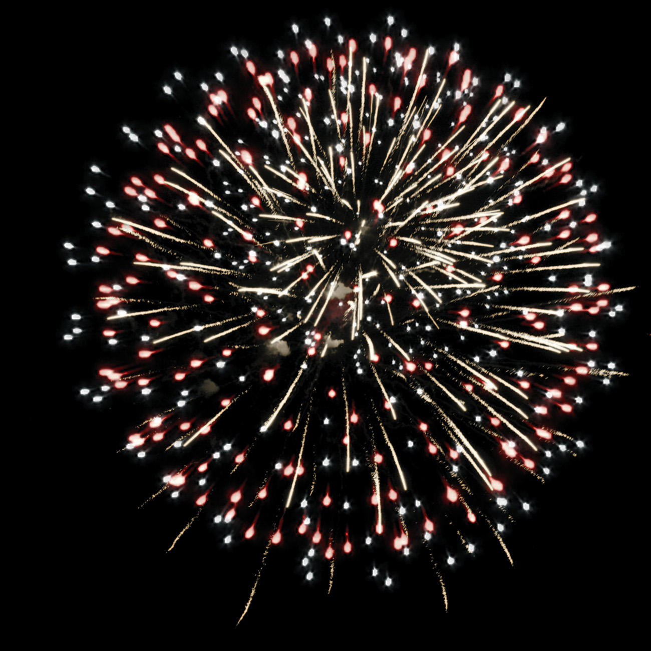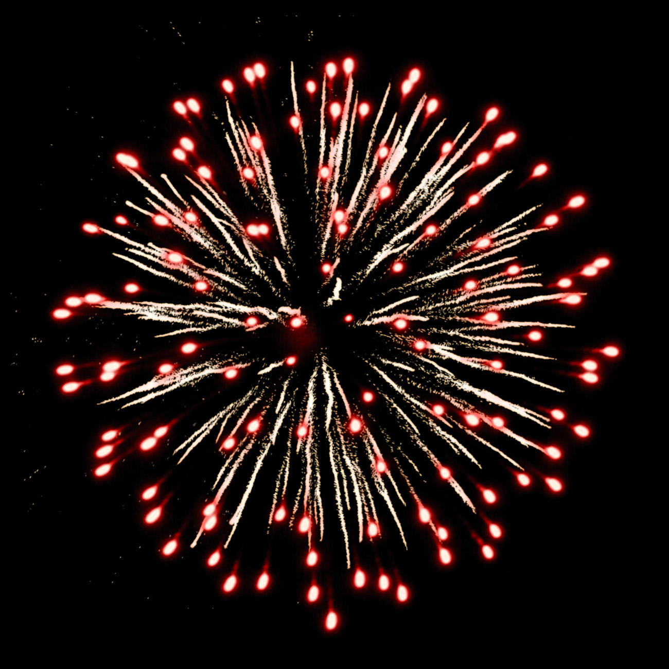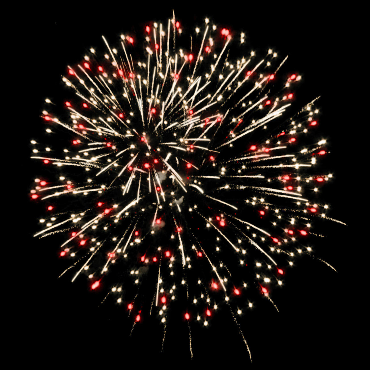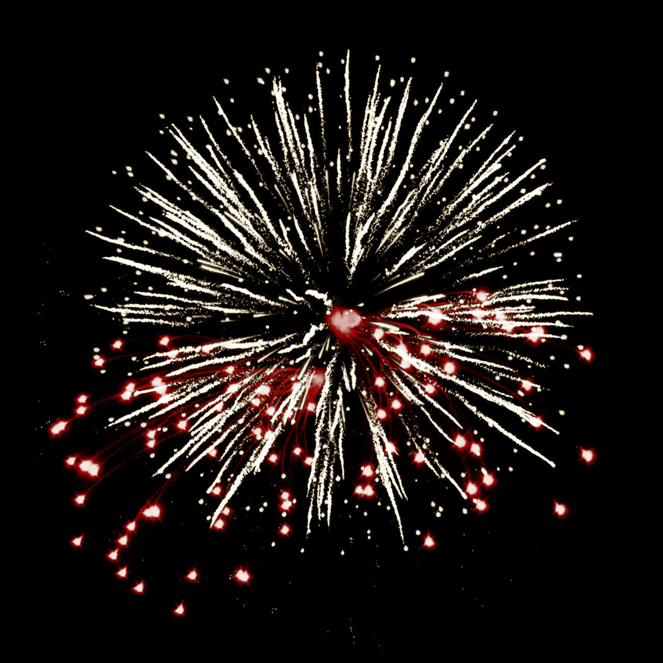 21. Разноцветные кометы, сферы из серебряных форсов с красными огнями на концах и множеством трещащих разлетающихся серебряных огней;