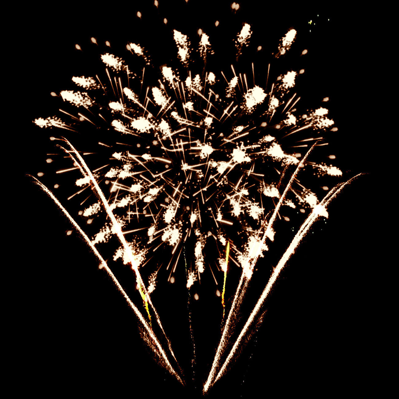 26. Веер. Золотые трассы с серебряными искрами и треском;