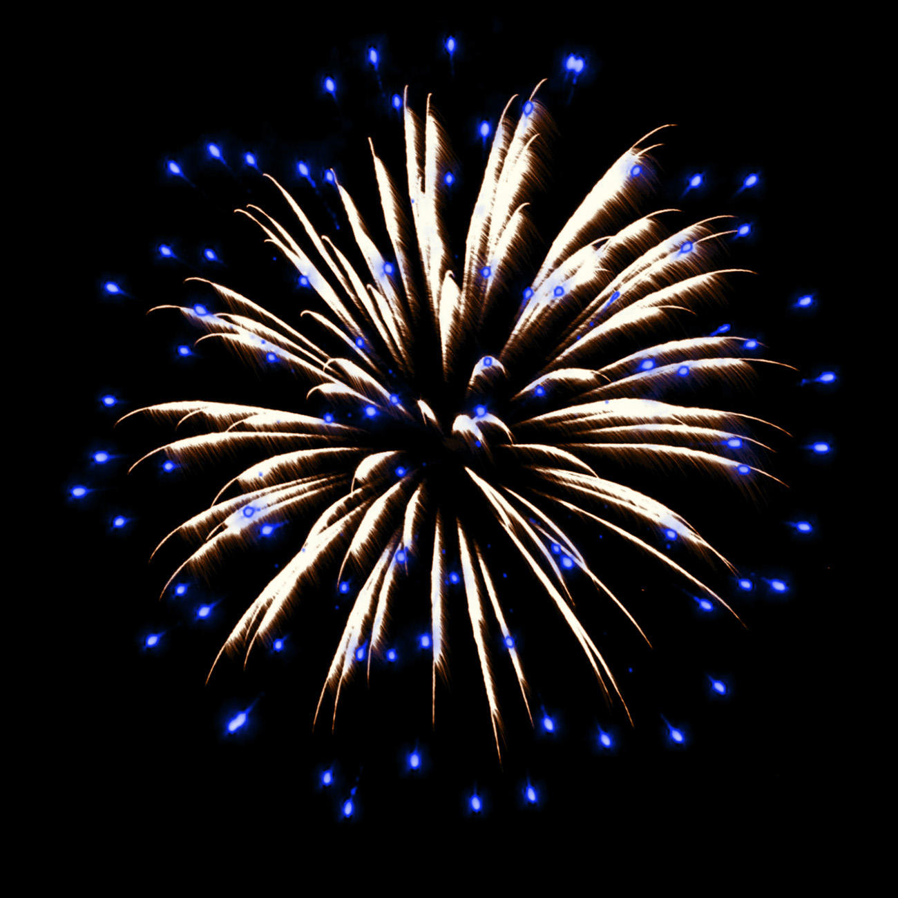 47. Веер. Золотые трассы с трещащими серебряными искрами и сферы из золотых мерцающих огней;