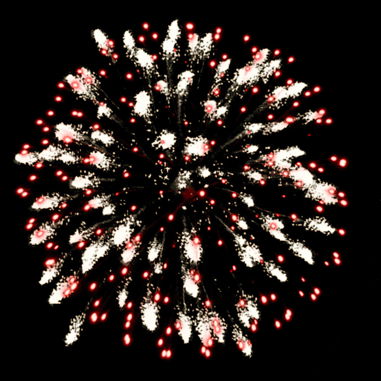 15. Сферы из серебряных форсов с красными огнями на концах и серебряных искристых трещащих форсов;