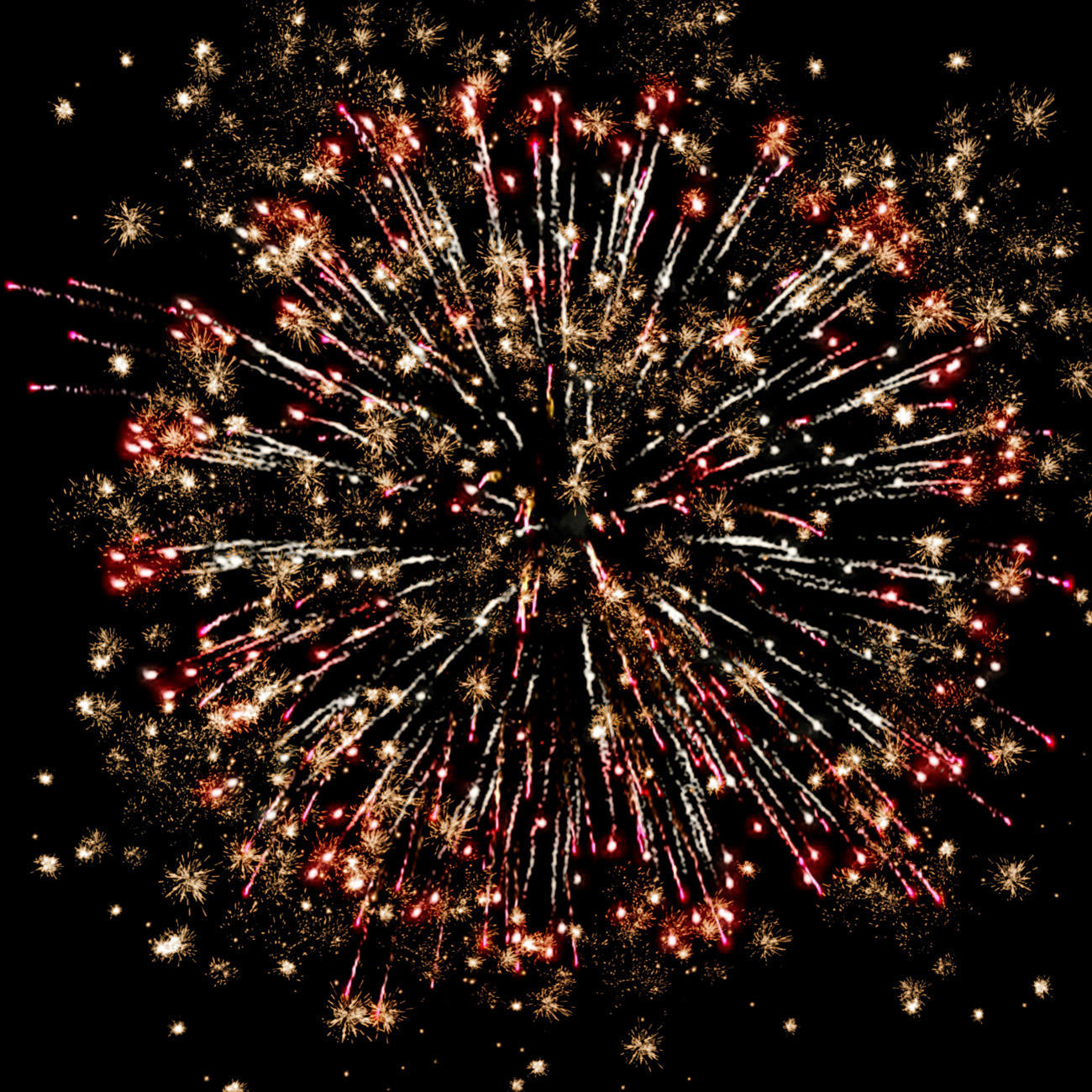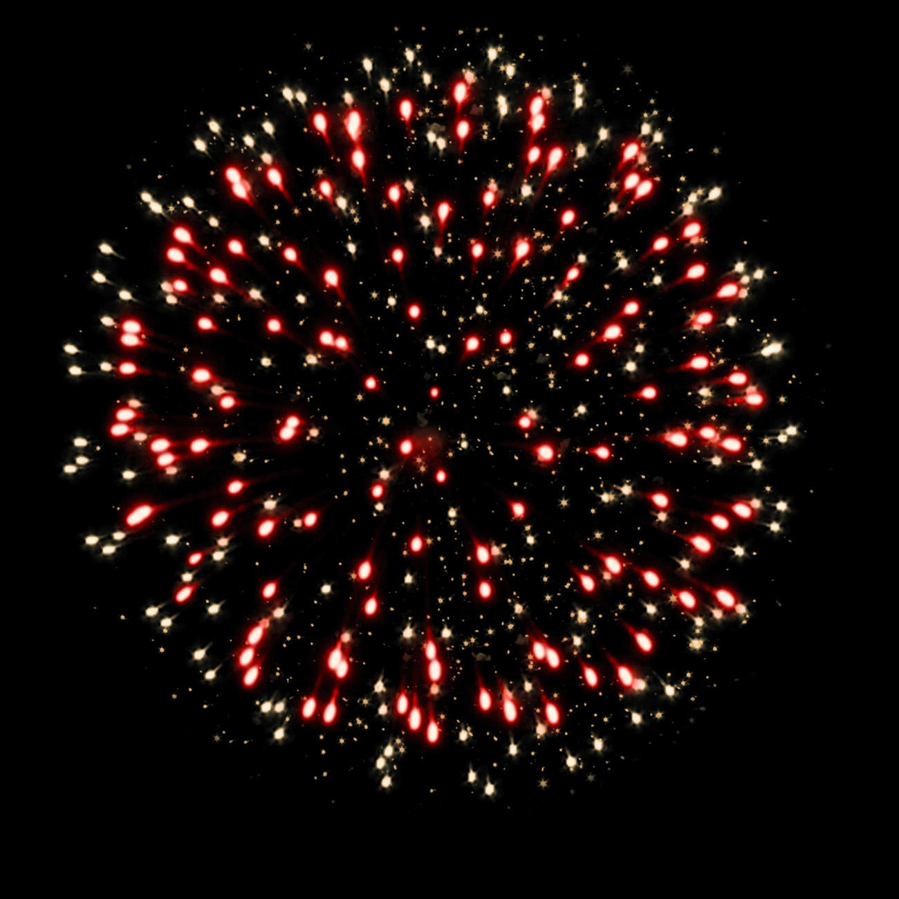 41. Веер. Золотые трассы с красными искрами, сферы и серебряных форсов и серебряных трещащих огней;