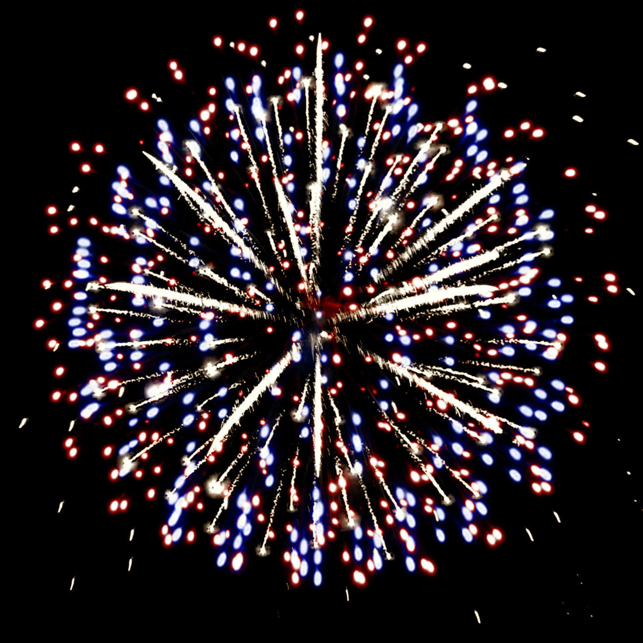 35. Веер. Разноцветные кометы, сферы из золотых форсов, красных, зеленых и синих огней;