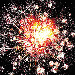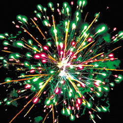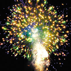 21. Красочная концовка: ЗАЛП - золотые звезды с пышными хвостами (кокос) и облако треска (трещащая хризантема).