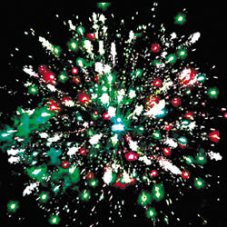 8. Серебряные шуршащие разлетающиеся кометы (паук), красное мерцание и зеленые звезды.