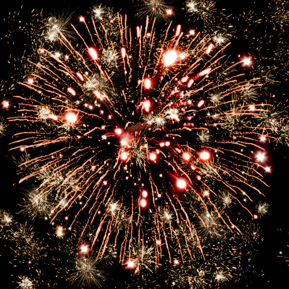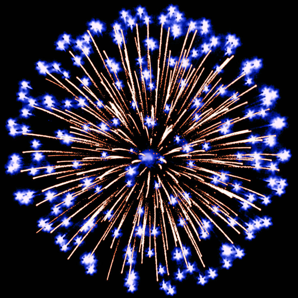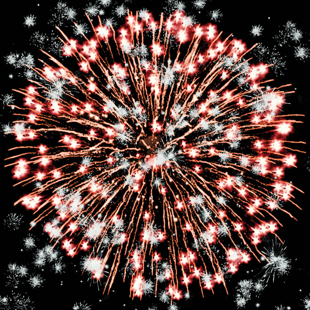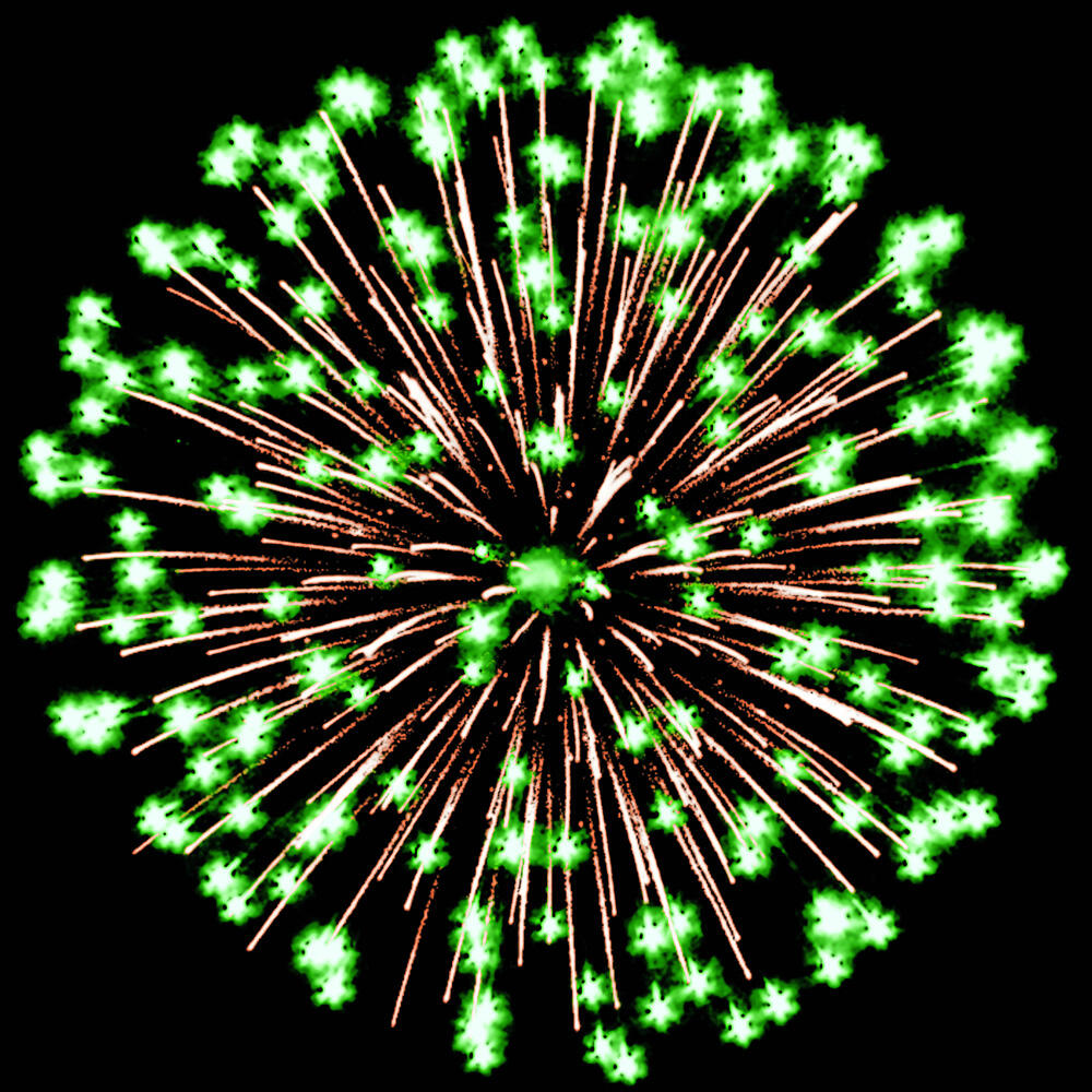 8-9. Сферы из красных, зелёных огней и золотых форсов с золотыми трещащими искрами