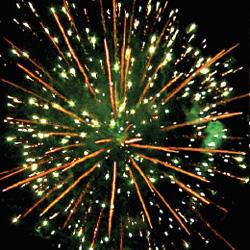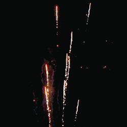 1-10. Выстреливает подряд: Красные звезды с пышными хвостами (кокос) и треск Множество золотых ниспадающих нитей (парча) и треск Множество серебряных ниспадающих нитей (парча) и белое мерцание Сине- красная сфера (пион) и треск Множество золотых ниспадающих нитей (парча) и зеленое мерцание Зелено- фиолетово- красная мерцающая сфера (пион) Множество золотых ниспадающих нитей (парча) и зеленое мерцание Оранжево- зеленая сфера (пион) и треск Зеленые звезды с пышными хвостами (кокос) и треск Красно- зелено- золотая мерцающая сфера (пион)