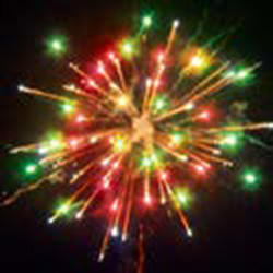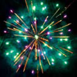 1. золотых форсов с белыми мерцающими искрами, зеленых и красных огней;