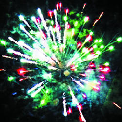 28. Красно-зелёная сфера-пион и облако трещащих разрывов