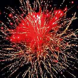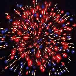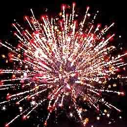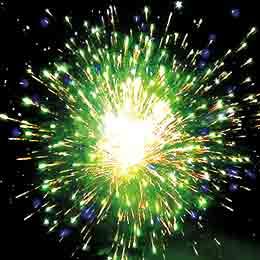 Красные, синие, зеленые, фиолетовые, малиновые, оранжевые, лимонные звезды с белыми, золотыми хвостами и треском и белое мерцание. Синие, оранжевые звезды с белыми хвостами и мерцанием. Белые кометы и золотые хвосты. Сфера белого мерцания и трещащих искр. Белые кометы, облако трещащих разрывов и белое мерцание.