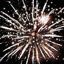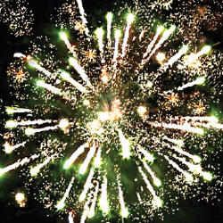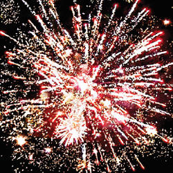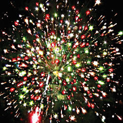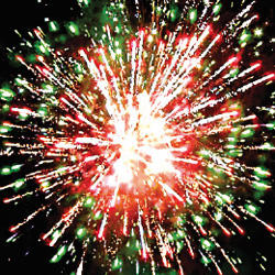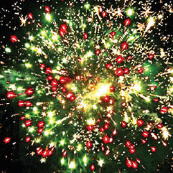 10. Залп: Красные звезды с пышными хвостами (кокос) и треск