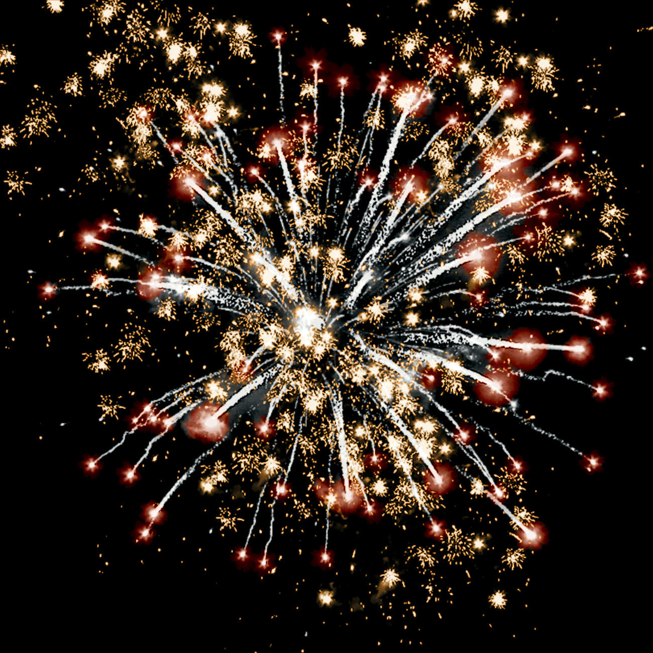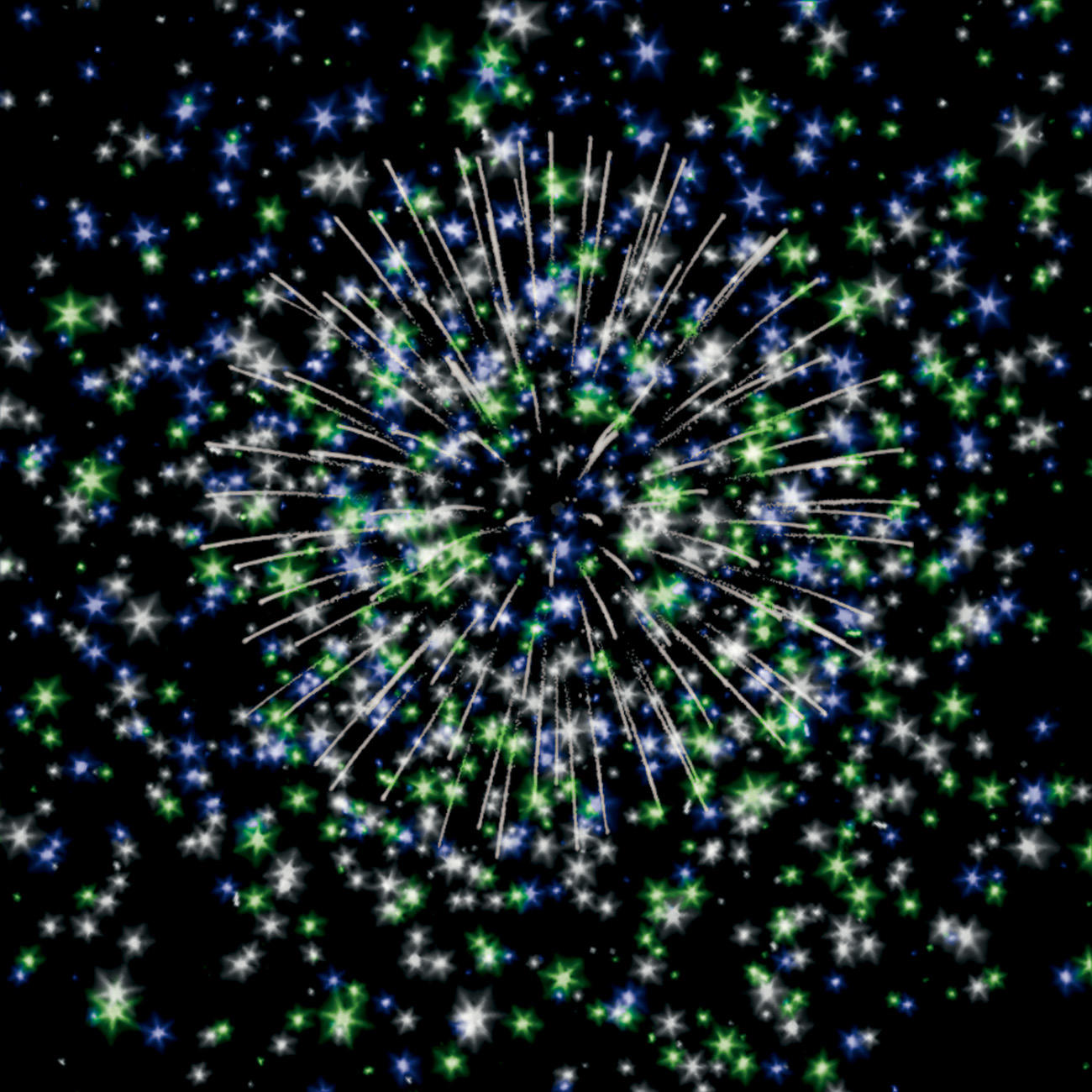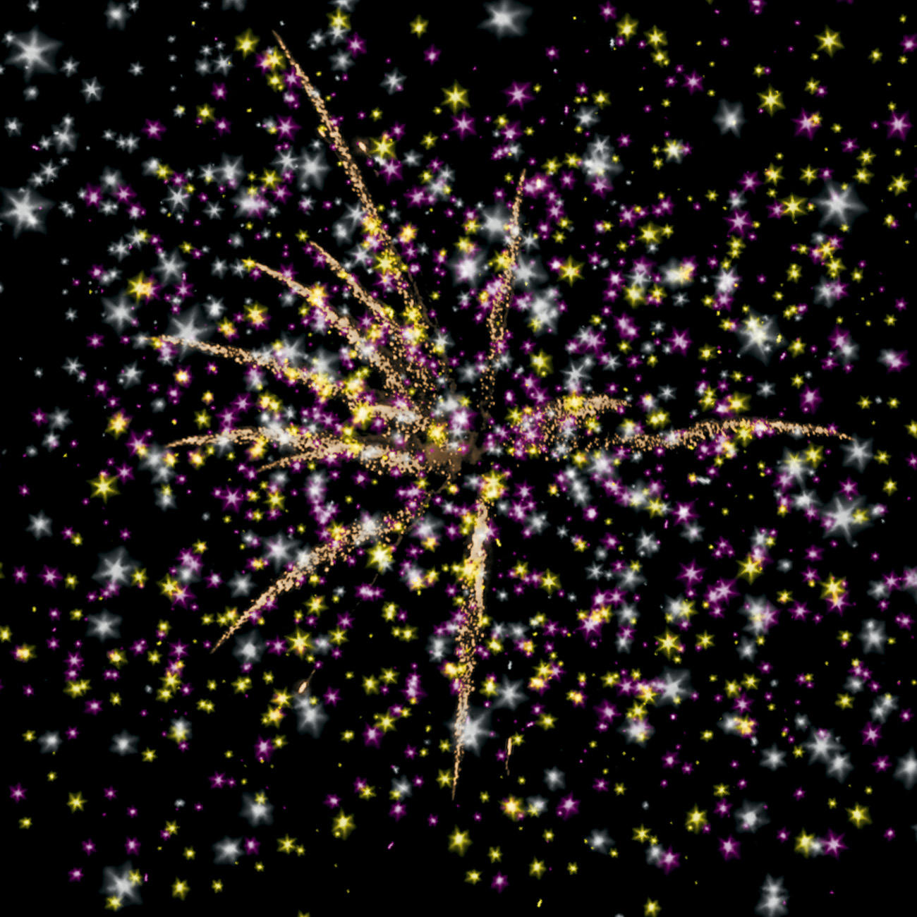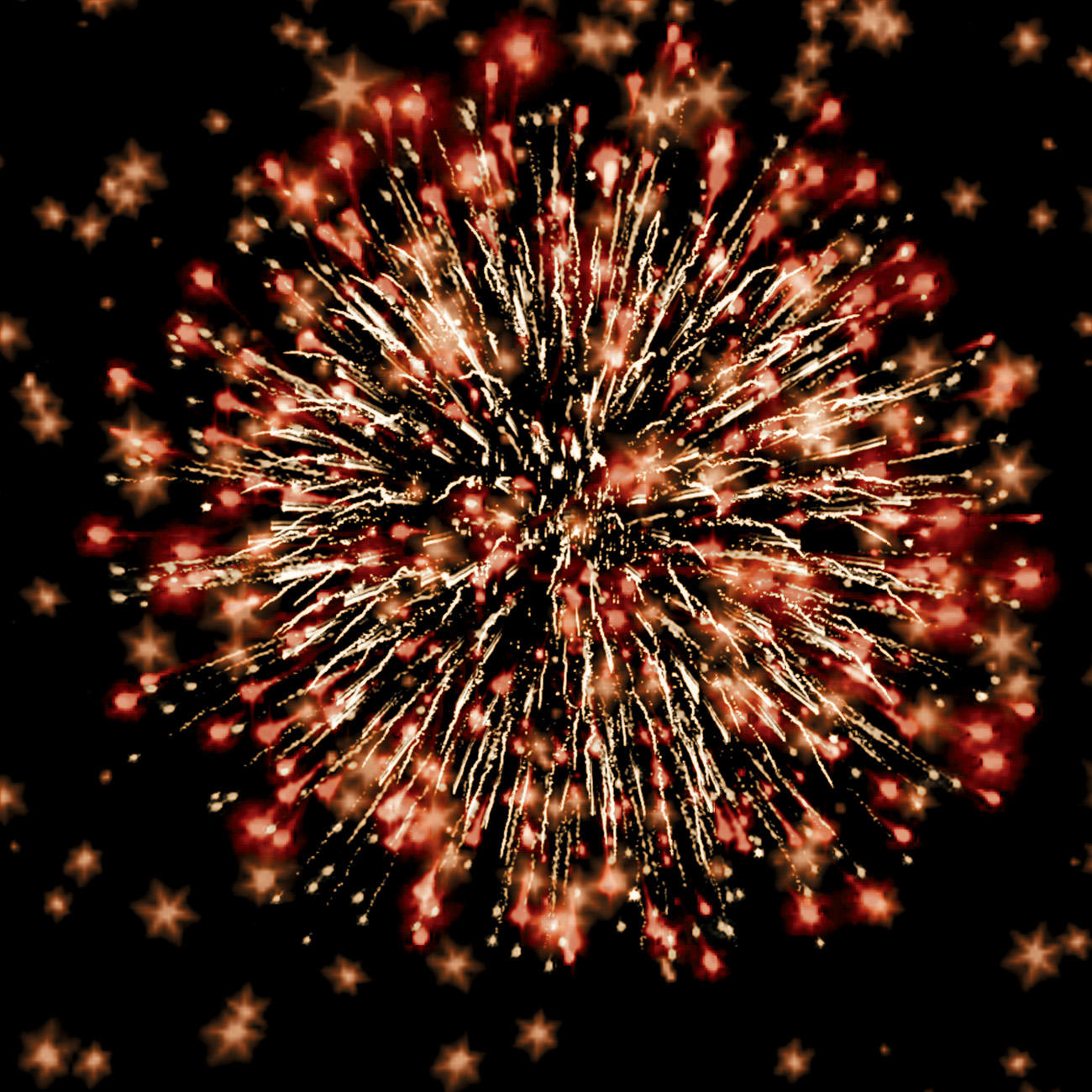 22 эффекта: 2 уровня. Свистящие элементы, разноцветные кометы разрываются сферами из: