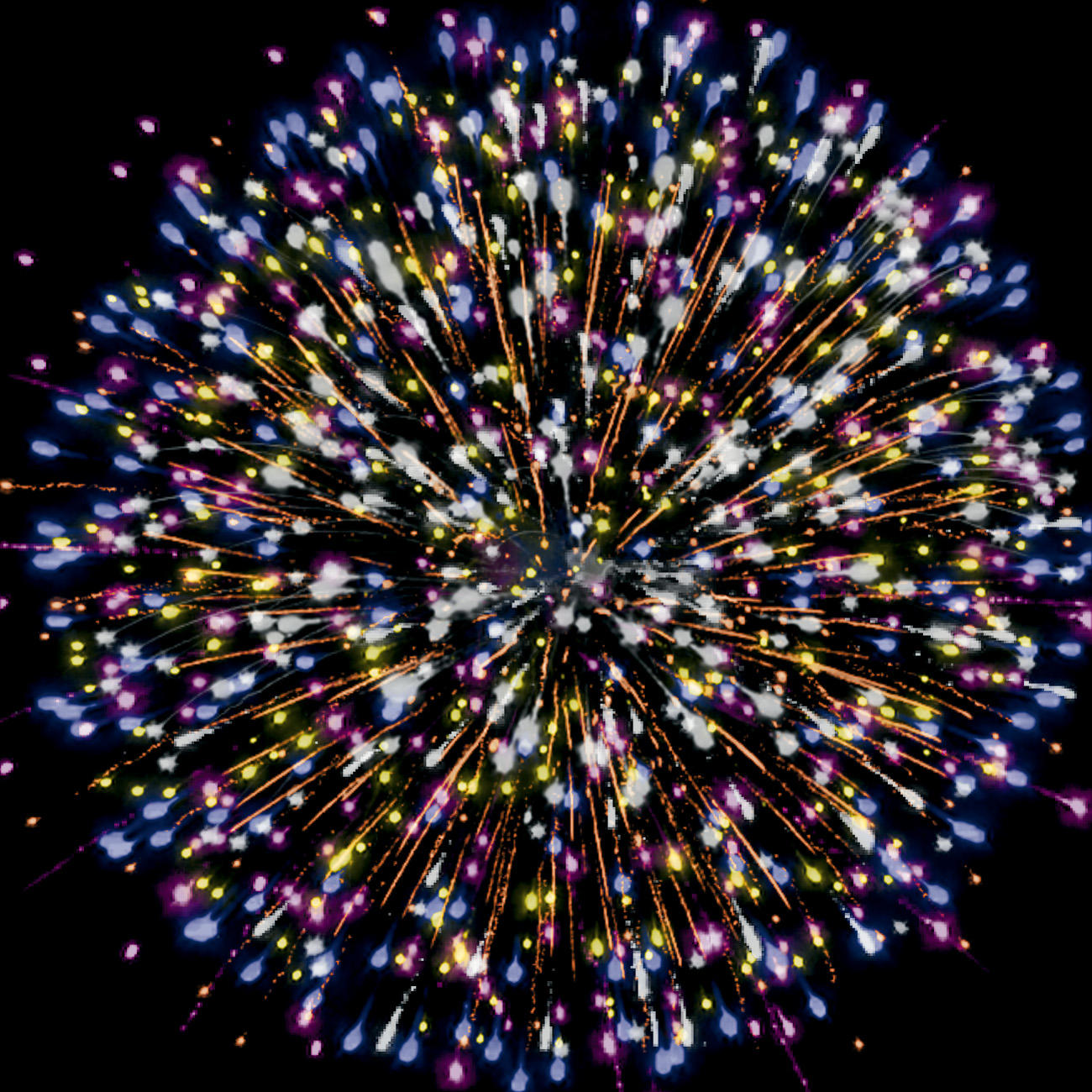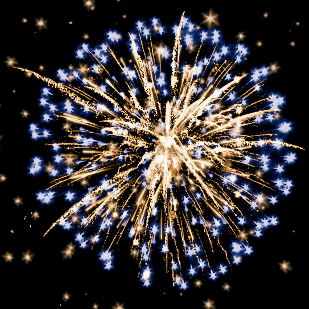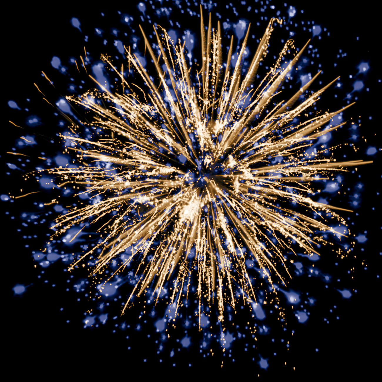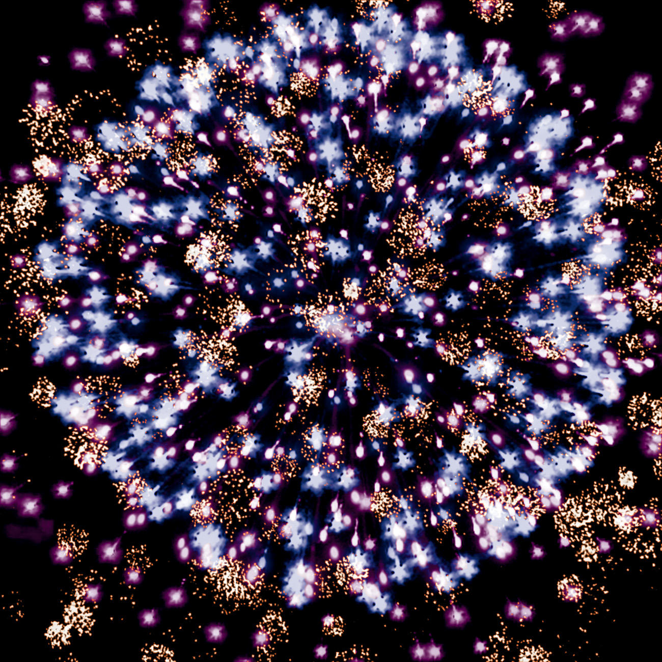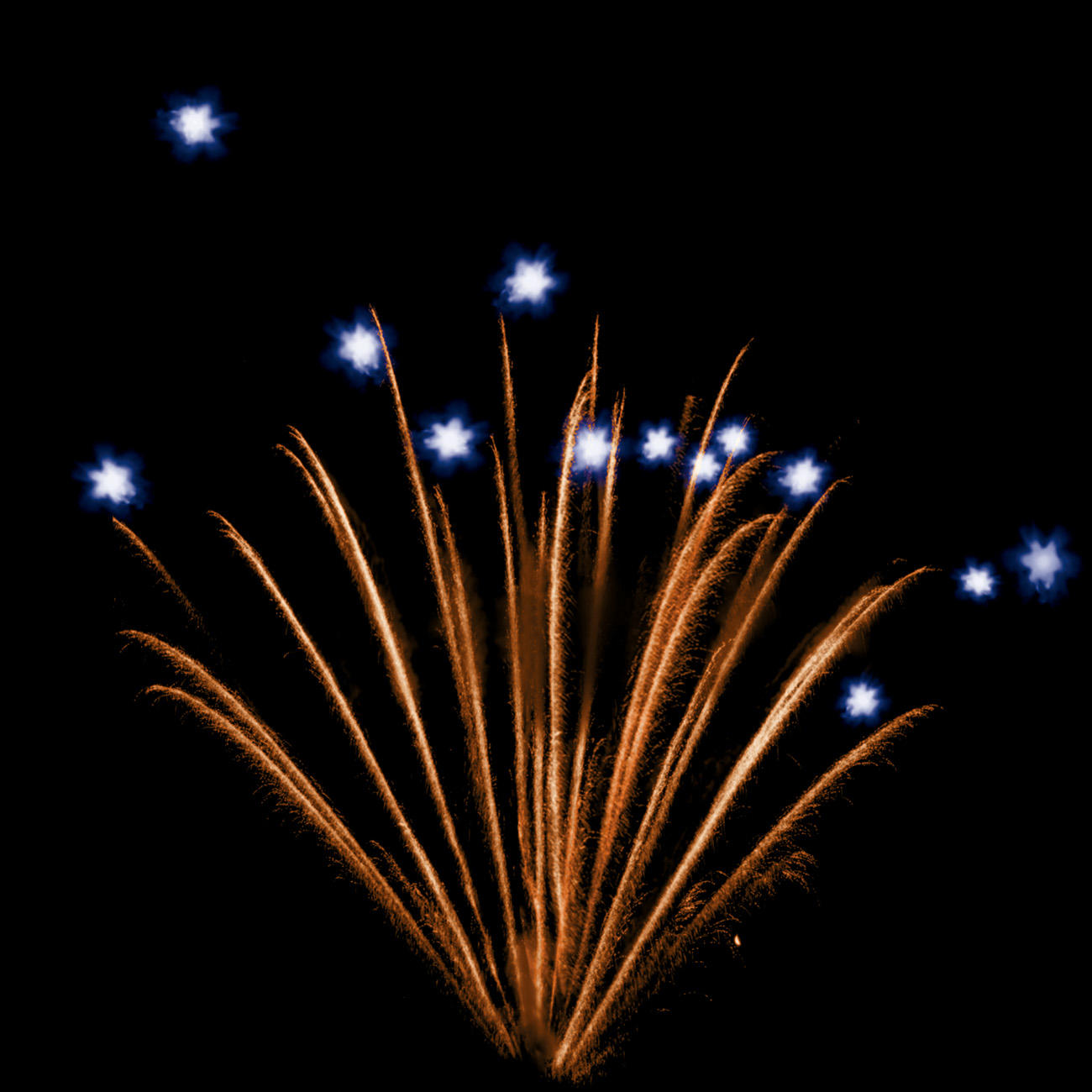 21. фиолетовых, синих и множества золотых трещащих искр.