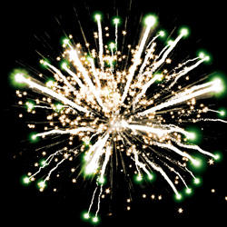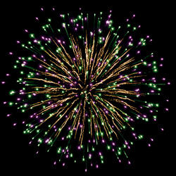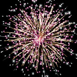 23 эффекта: Разноцветные кометы, золотые с красными мерцающими, трещащими, серебряными, золотыми искрами, серебряные трассы, свистящие элементы разрываются сферами из: 1-2. Крупных розовых, синих и белых мерцающих огней; 3-4. Серебряных форсов с красными, зелёными огнями на концах и зелёных, золотых мерцающих огней;