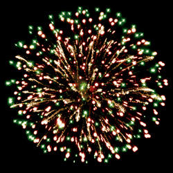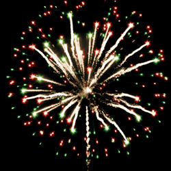 23. Крупных красных и крупных зелёных огней, множеством серебряных сфер. В финале красочный залп.