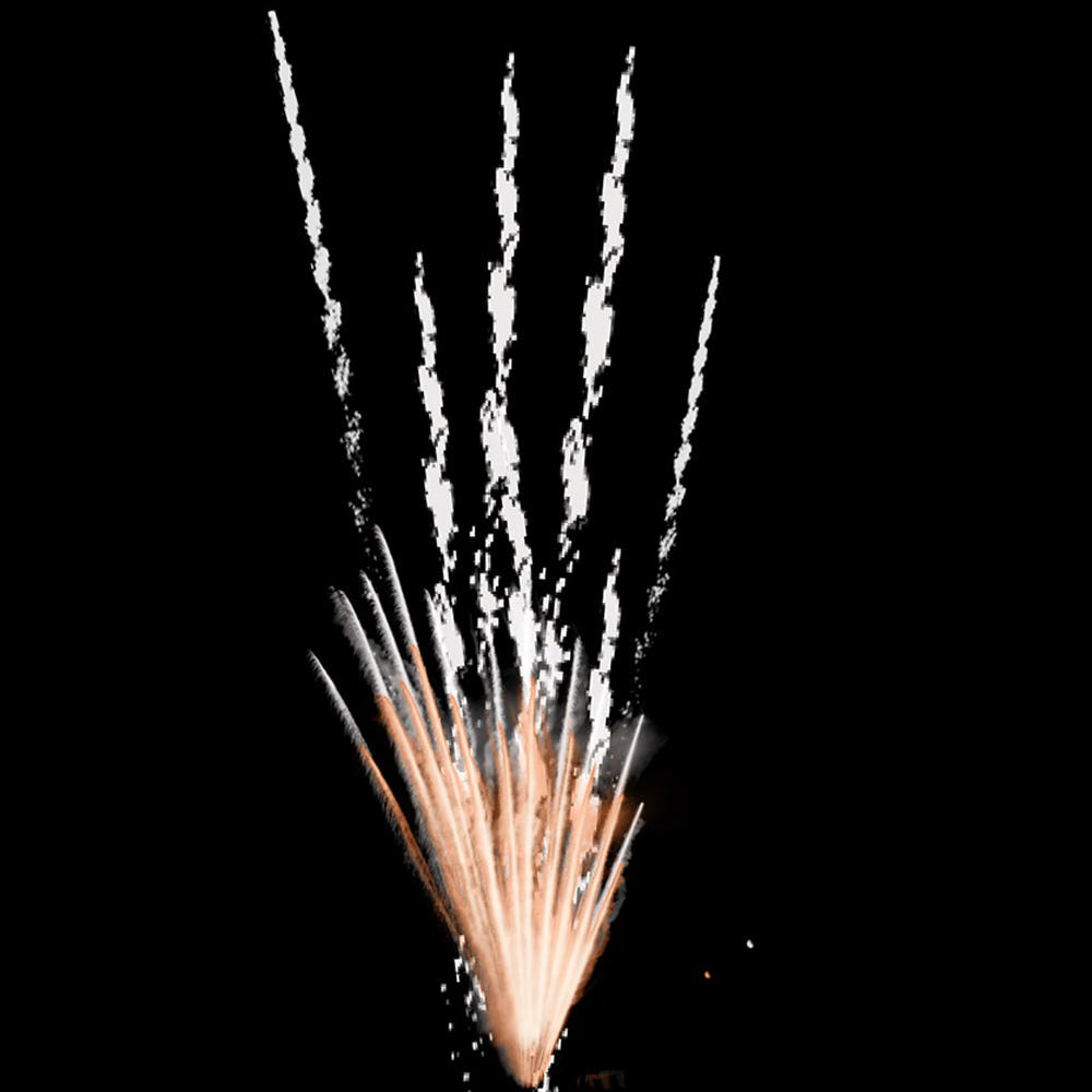 6. Сферы из серебряных форсов с трещащими искрами и красными огнями на концах.