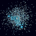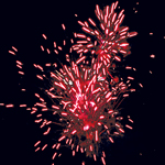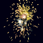 Великолепный фейерверк! Яркие синие, красные, лимонные кометы поднимаются очередями в небо и разрываются красочным салютом на фоне множества разноцветных блуждающих звезд.