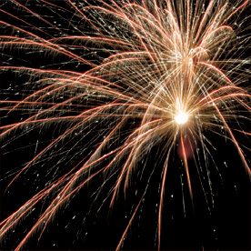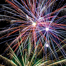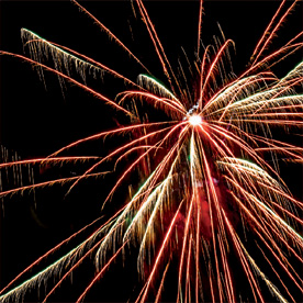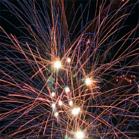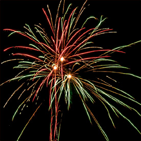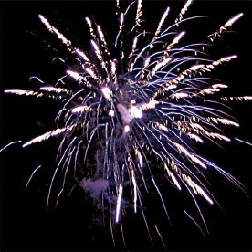 Разноцветные кометы, свистящие кометы разрываются сферами из: зеленых огней с серебряными форсами; синих огней; красных огней; зеленых огней; белых мерцающих огней; зеленых мерцающих огней; фиолетовых огней с серебряными форсами; золотых мерцающих форсов; трещащих огней. Красочная концовка из нескольких залпов.