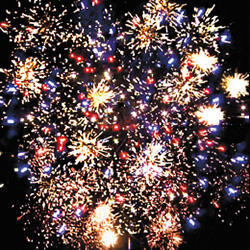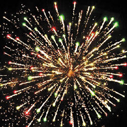 9-10. Выстреливает подряд: Красно-зеленые звезды с пышными хвостами (кокос) и белое мерцание. Красно-зеленые звезды с пышными хвостами (кокос) и облако треска (трещащий дождь).