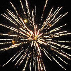 1-8. Выстреливает подряд: Красная сфера (пион) и облако треска (трещащий дождь). Синяя сфера (пион) и облако треска (трещащий дождь). Серебряные хвосты и облако треска (трещащий дождь). Свист. Красно-синяя сфера (пион) и облако треска (трещащий дождь). Сине-белая мерцающая сфера (пион). Множество серебряных ниспадающих нитей (парча). Множество золотых ниспадающих нитей (парча).