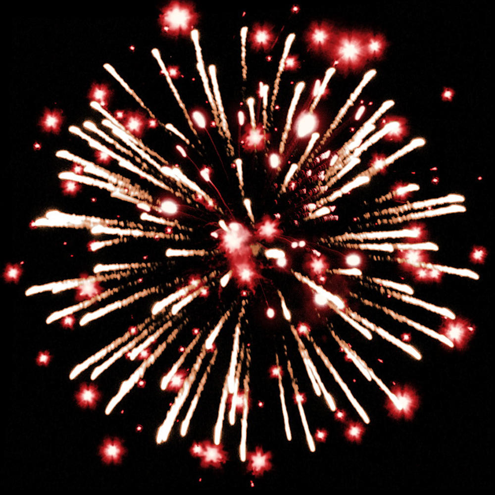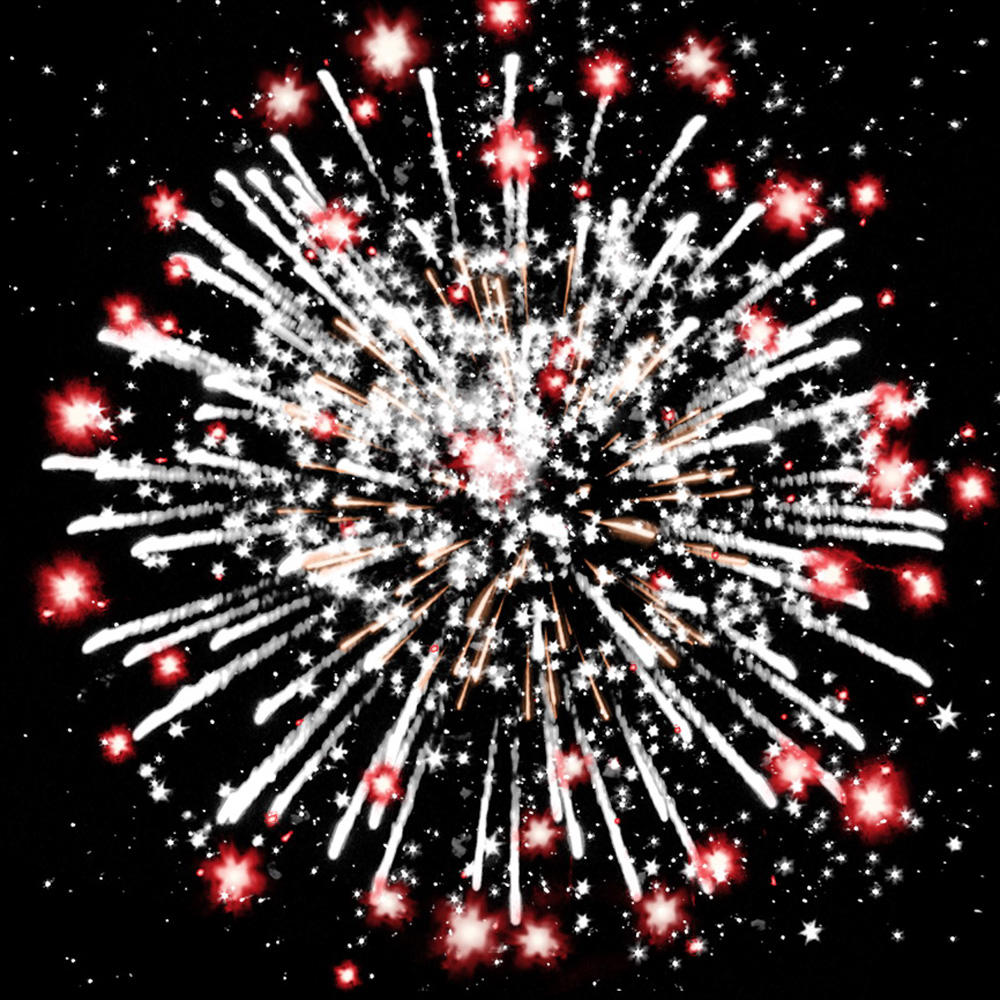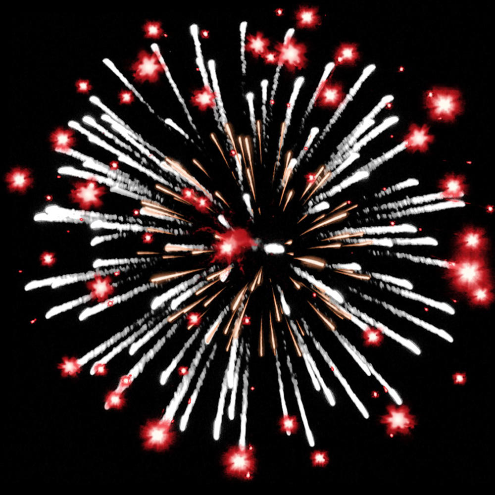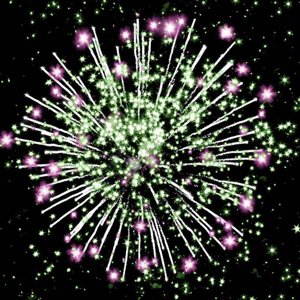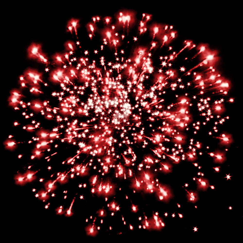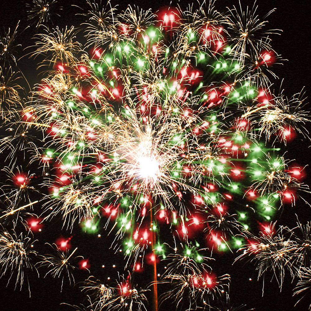 16. серебряных форсов с трещащими искрами и красными и зелёными огнями на концах.