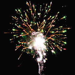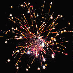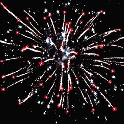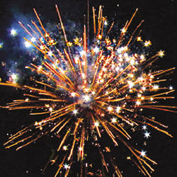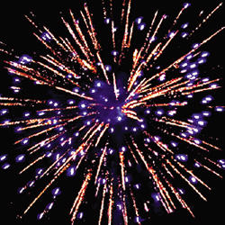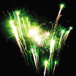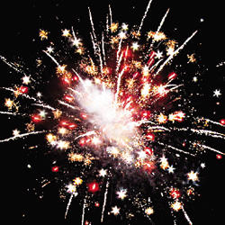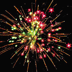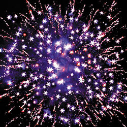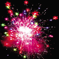 8. Выстреливает подряд: Множество серебряных ниспадающих нитей (парча), красные звезды и трещащие разрывы (трещащий дождь). Множество серебряных ниспадающих нитей (парча), зеленые звезды и трещащие разрывы (трещащий дождь). Множество серебряных ниспадающих нитей (парча), синие звезды и трещащие разрывы (трещащий дождь).