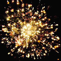 13. Красочная концовка. Веер: золотые звезды с пышными хвостами (кокос) и треск.