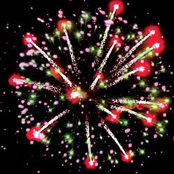 2. Золотых искристых форсов, зелёных и красных огней, переходящих в золотые искры;