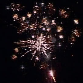 150 зарядов, полторы минуты! Яркие кометы разрываются в виде золотистых хризантем, окруженных яркими облаками из огненных шаров с золотыми трещащими звездами. Красочная концовка.