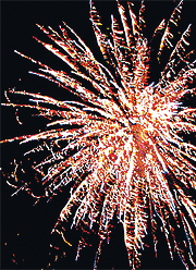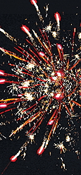 Разноцветные кометы, швермеры, серебряные трассы разрываются сферами из: