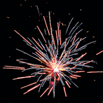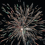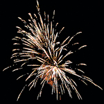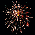Двухуровневый салют 36 залпов калибром 1 дюйма (25 мм). и 1,6 дюйма (40 мм.) Внизу - мерцающие звезды, вверху - разноцветные кометы разрываются золотыми нитями с цветными звездами на концах, разноцветными салютами, золотыми ниспадающими нитями, в конце трещащий салют.