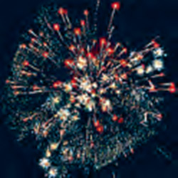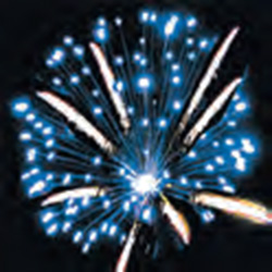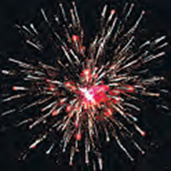 Комбинированная батарея салютов 85 зарядов калибром от 20 до 50 мм. 1. Серебряные трассы. Разноцветные кометы разрываются сферами из: