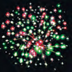 9. красных, зеленых и золотых огней, переходящих в белые мерцающие огни,