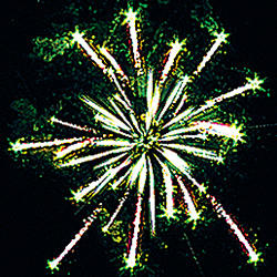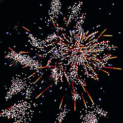 Сфера из серебряных форсов с оранжевыми кончиками и множества трещащих золотых сфер